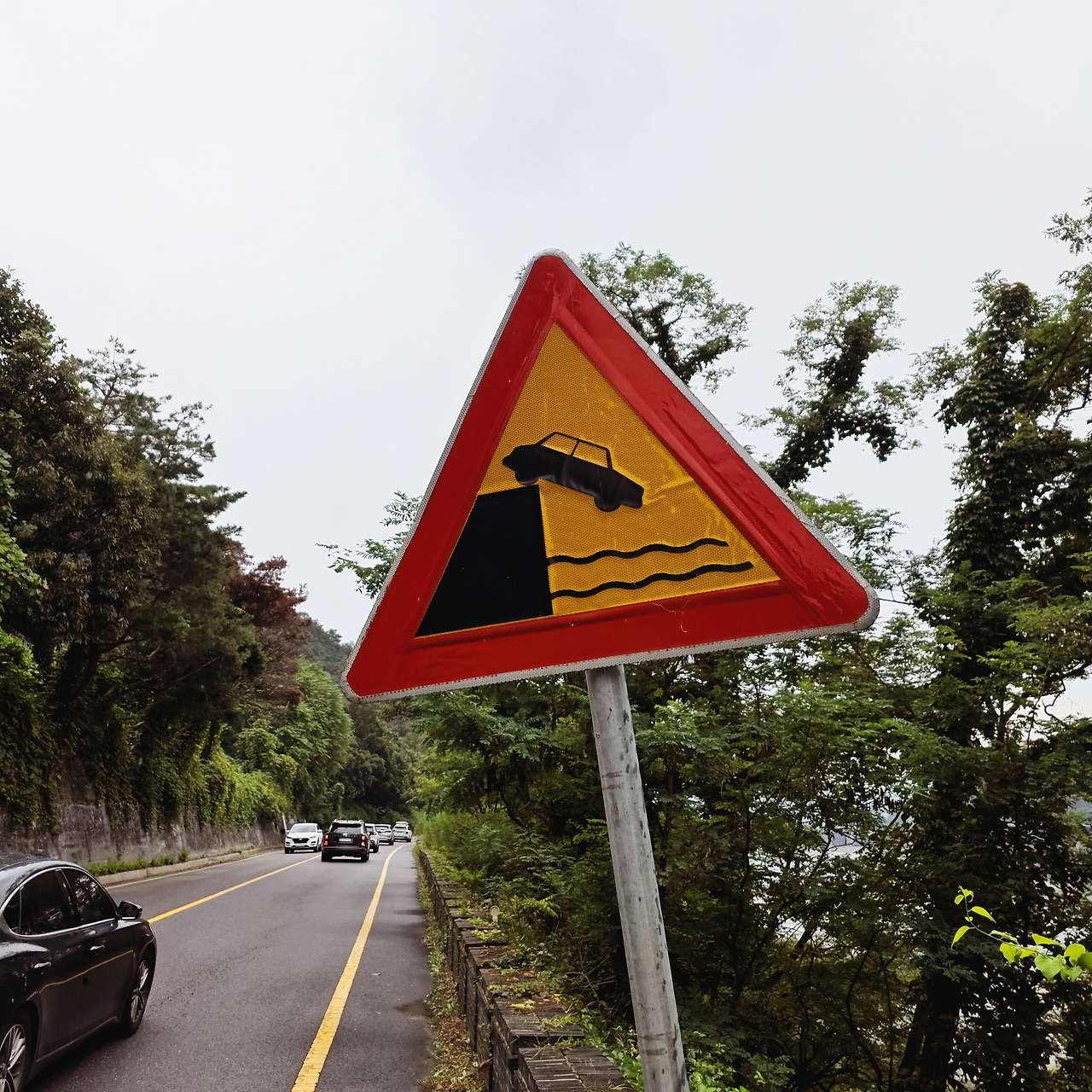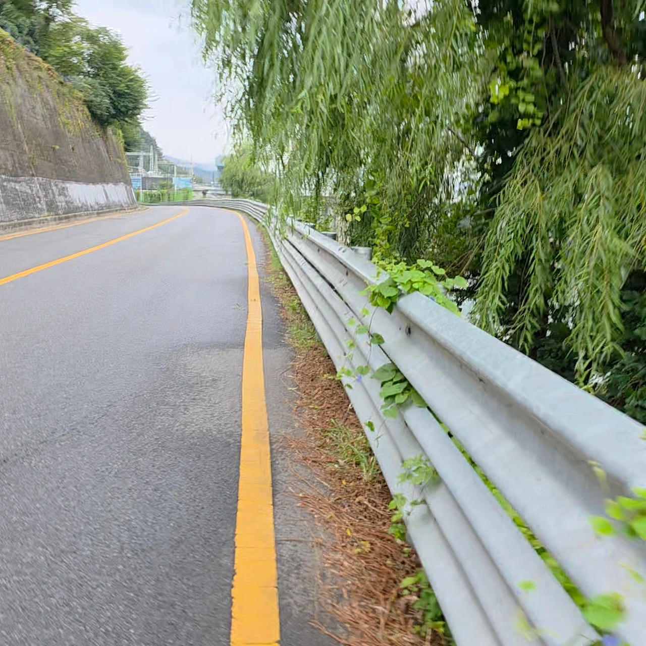 가다 보니 이상함을 느꼈다. 계속 차도로 가고 있는 것이다. 왕복 1차선 도로 그리고 외곽 차선과 도로이탈 방지울타리 사이 겨우 걸을만하게 남겨진 좁은 땅을 걸었다.