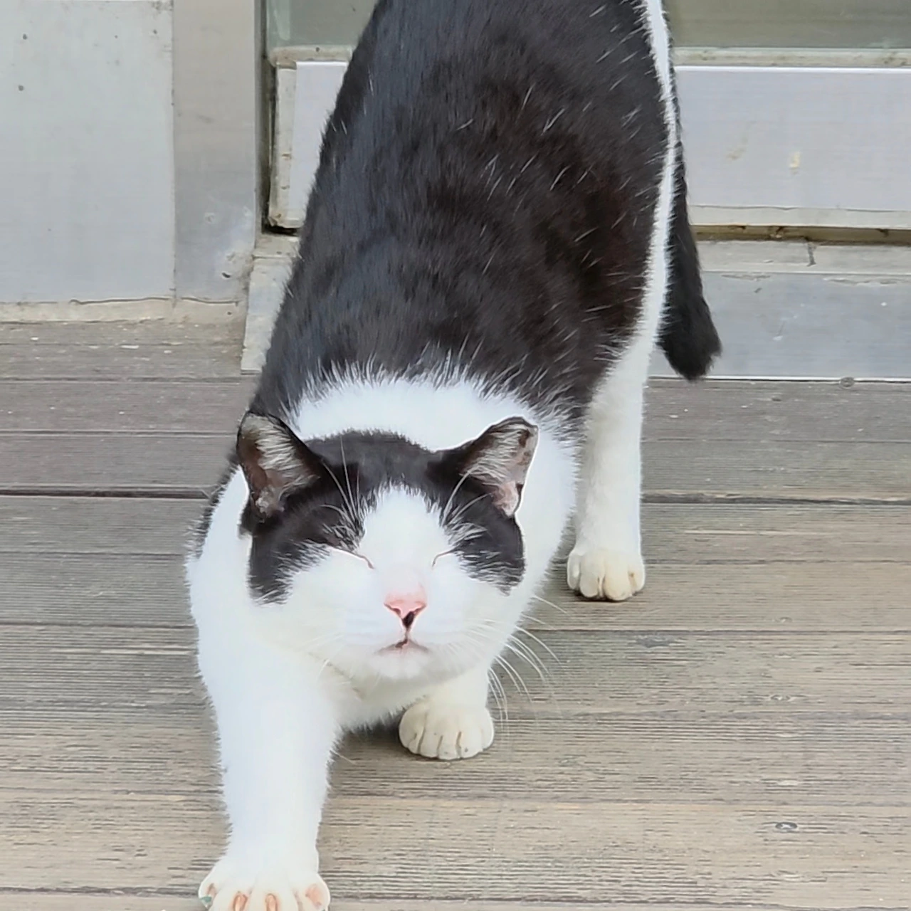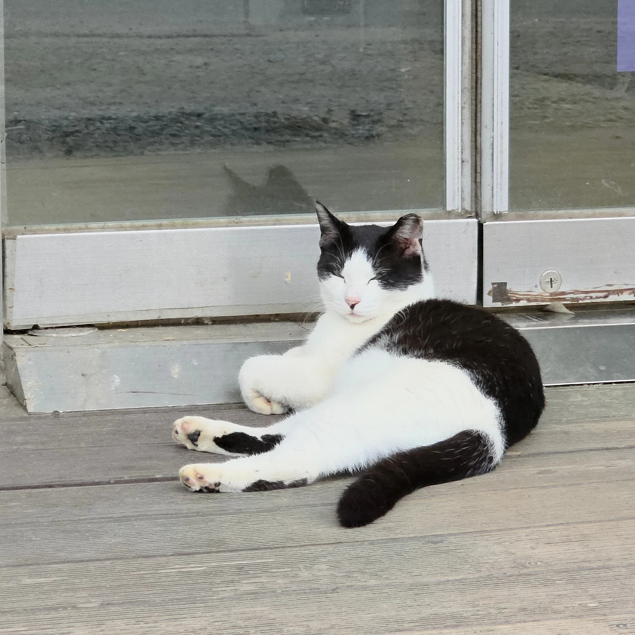 길냥이는 마치 도어맨처럼 편의점 문 앞에 떡하니 버티고 있었다.