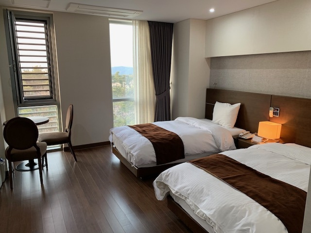 침대가 두개인 방은 침대 하나에 이것저것 늘어놓을수가 있어 편하다.