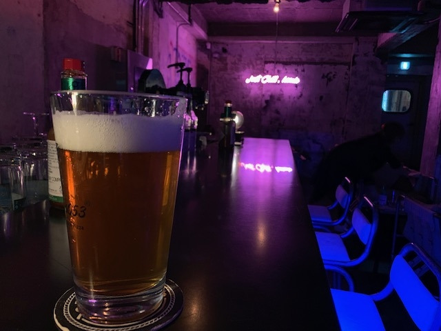바에 앉아 맥주를 하나 시키고 음악을 듣는다.