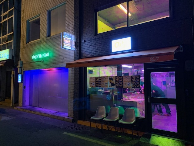 근처 공사장옆 차 한대가 겨우 들어 갈 만한 빈공간을 찾아 차를 대고 내리니 바로 앞, 버거집에서 센스있는 힙합 음악이 흘러나왔다.