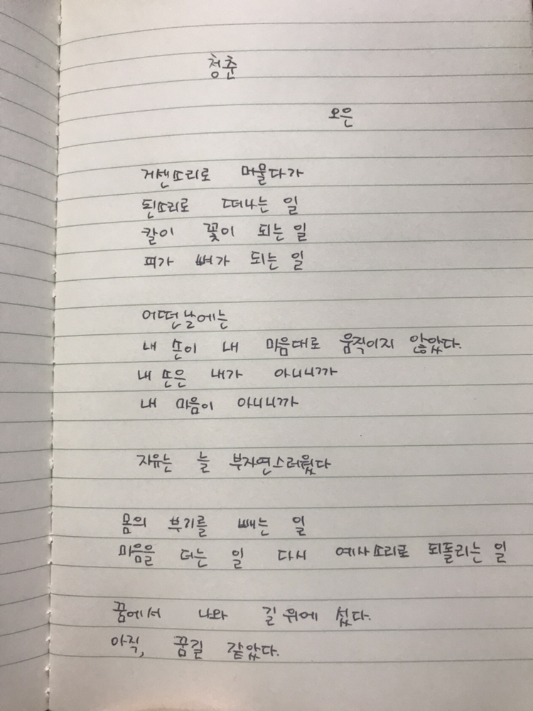 [0417] 바다 - 백석 바닷가에 왔드니바다와 같이 당신이 생각만 나는구려바다와 같이 당신을 사랑하고만 싶구려 구붓하고 모래톱을 오르면당신이 앞선 것만 같구려당신이 뒤선 것만 같구려 그리고 지중지중 물가를 거닐면당신이 이야기를 하는 것만 같구려당신이 이야기를 끊은 것만 같구려 바닷가는개지꽃에 개지 아니 나오고고기비눌에 하이얀 햇볕만 쇠리쇠리하야어쩐지 쓸쓸만 하구려 섧기만 하구려