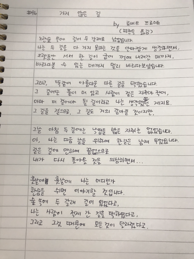 [0904] #96 가지 않은 길 by 로버트 프로스트 / 피천득 옮김