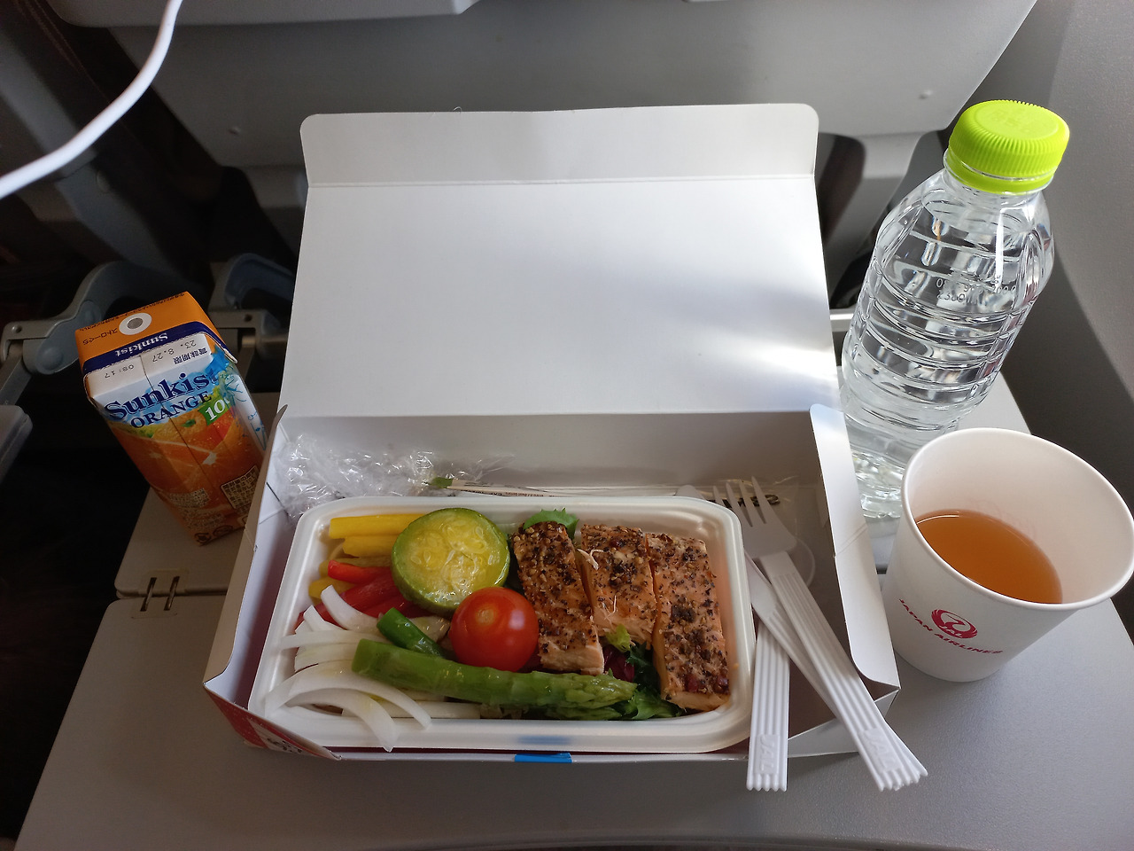 아래 사진이 내가 일본항공에서 실로 오랜만에 먹어보는 기내식이었다.