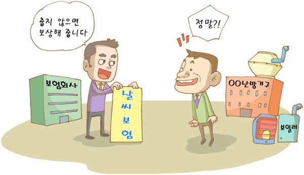 내일 온도가 20도 이하가 되면 천 원을 받고, 30도 이상이 되면 3천 원을 내는 계약