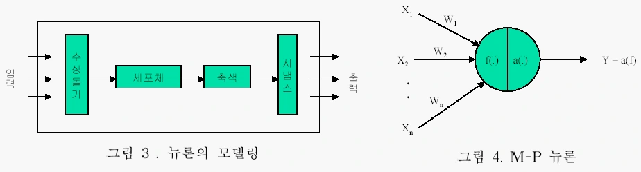 이러한 구조에 영감을 받아서 1940년경에 인공 신경망이라는 알고리즘이 등장한다. 인공 신경망도 뇌의 뉴런과 비슷한 '퍼셉트론'이라는 유닛을 만들어서 입력이 일정 수치(역치) 이상이면 1을, 아니면 0을 출력하게 만들었다.
