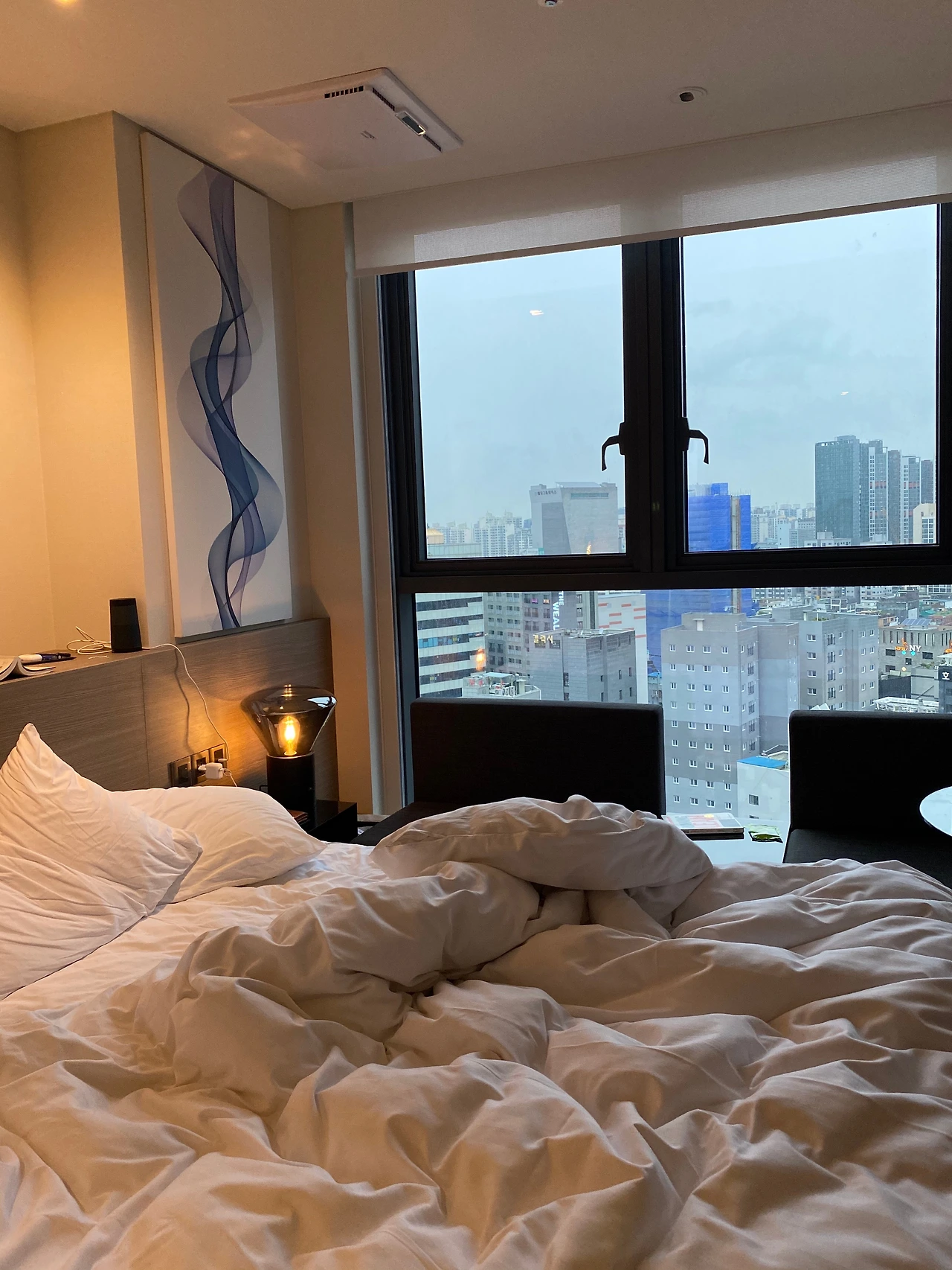 이름답게 가격도 페어하고, 객실 사이즈도 페어하다. 딱 필요한 것만 최소로 갖춘 느낌. 둘이 오긴 확실히 좁고 동선이 불편하다. 하지만 부담 없이 혼자 와서 쉬기에는 매우 적절하다. 침대가 아주 좋다. 글래드호텔의 침대보다 조금 더 푹신한 느낌. 킹 베드에 놓인 베개 4개에 파묻혀 자는걸 내가 아주 좋아한다는 걸 알게 됐다. 합리적인 가격 덕분인지 주말에는 거의 풀 부킹 상태였다고 한다. 손님들의 나이대와 방문 목적이 글래드호텔에 비해 조금 더 폭넓은 느낌. 호화로운 호캉스를 기대하기엔 확실히 부족한 면이 있는 곳.