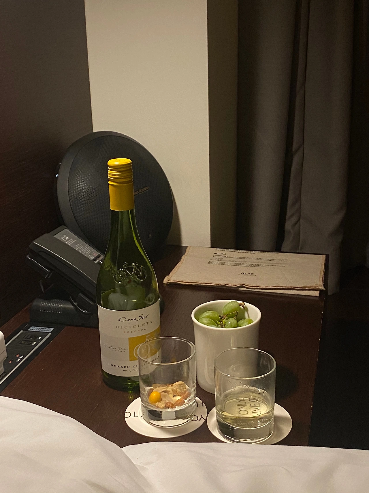 모텔보단 훨씬 훨씬 좋지만, 어딘가 모르게 모텔의 느낌을 지울 수 없다. 조금은 가볍다. 하지만 하만카돈 스피커가 다해낸다. 이건 글래드 라이브의 젊고 활기찬 정체성을 아주 잘 살려주는 핵심 포인트다. 실제로 방에 있는 내내 음악을 틀어뒀고 어딘가 2% 부족한 느낌을 꽉꽉 채워줬다. 바퀴 달린 넓은 책상이랑 침대 옆에 놓인 단단한 빈백도 좋았다. 건식 세면대가 아주 넓어서, 내가 갖고 온 물건들을 가지런히 놓아두기도 편했다. 주로 호캉스 온 여자 그룹이나 커플 손님들이 많았다. 남자끼리 호캉스 온 그룹은 보지 못했다.