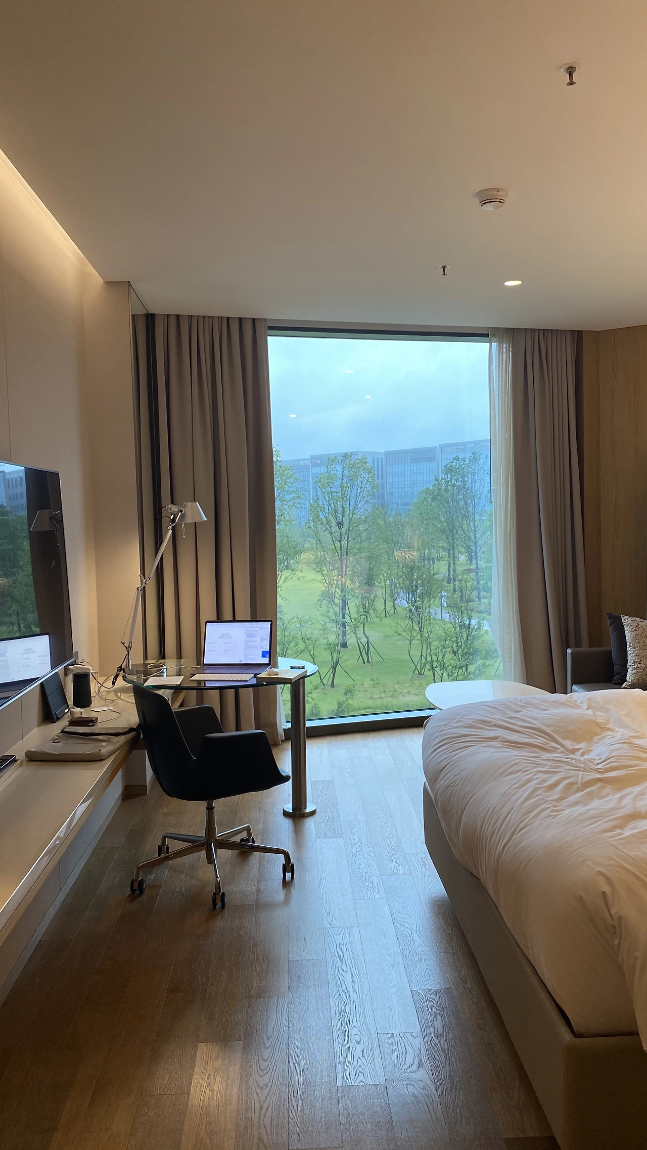 가장 많이 기대했고, 가장 좋았던 곳. 객실 통유리에 가득 찬 서울식물원 뷰를 보면서, 미친척하고 하룻밤 더 있다 갈까 잠깐 고민했다. 이런 작업실을 갖고 싶단 생각을 했다. 저녁 시간에 라운지에 준비된 간단한 음식과 술은 꽤나 준수했다. 맛의 레이어가 켜켜이 쌓인 미슐랭 음식의 느낌은 당연히 아니지만, 적당히 기분 내기엔 충분한 정도. 준비된 화이트 와인이 좋았다. 침대는 페어필드의 것과 거의 비슷하거나 같은 정도이다. 오늘도 내가 좋아하는 베개 4개에 파묻혀서 잘 예정이다. 공항 근처라 공항에서 일하는 것으로 추정되는 사람들이 종종 보인다. 그래서 좀 더 해외여행 간 기분이 불쑥불쑥 찾아온다. 찾는 손님들의 나이대도 이전의 곳들과는 다르게 조금 더 높은 편으로 추정된다. 3-4-50대 손님들이 많아 보인다.