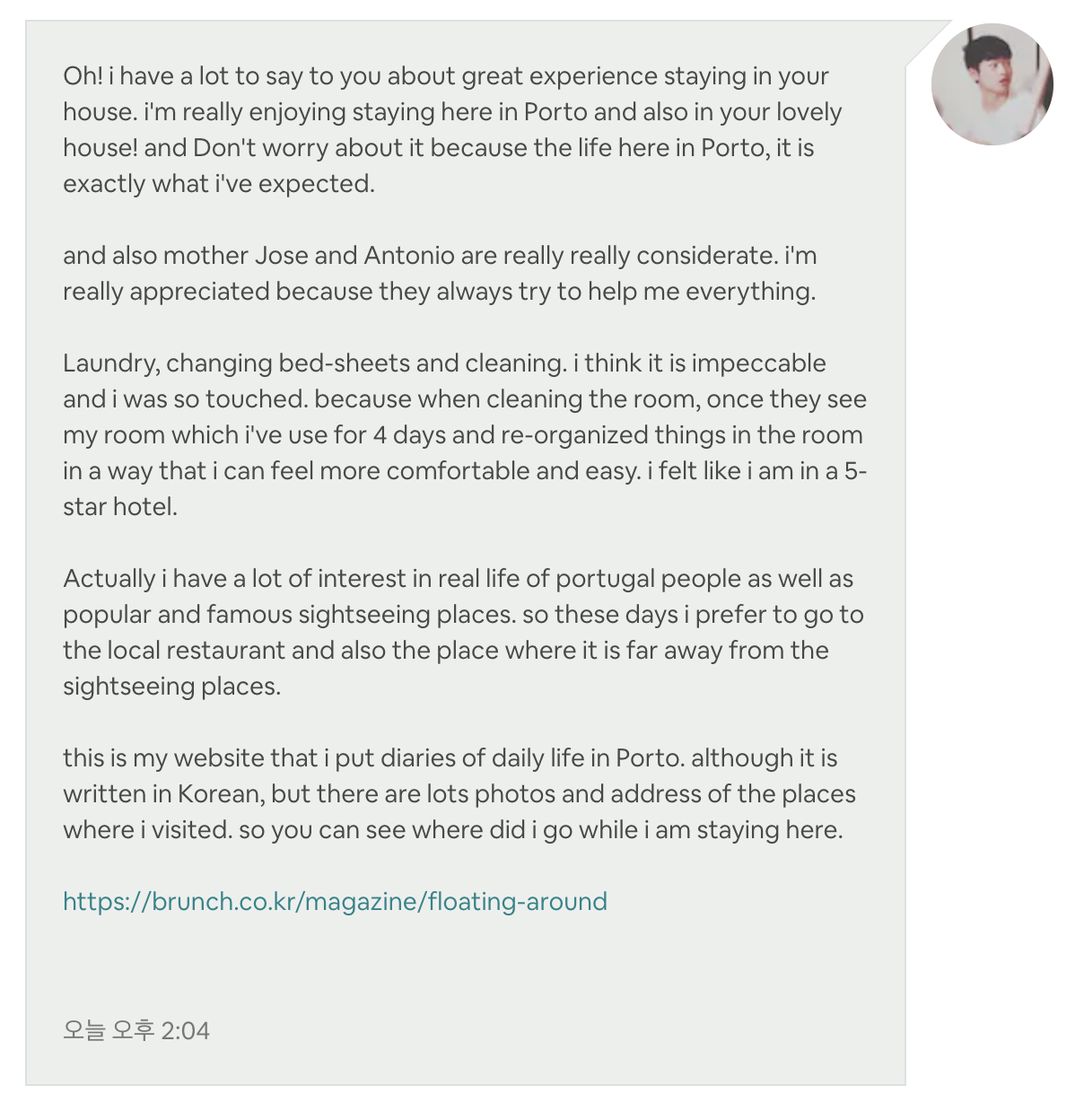∙ 어느 날 호스트에게서 온 장문의 메시지