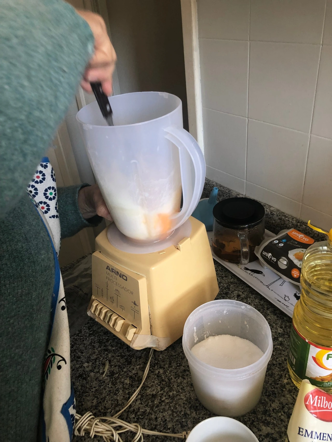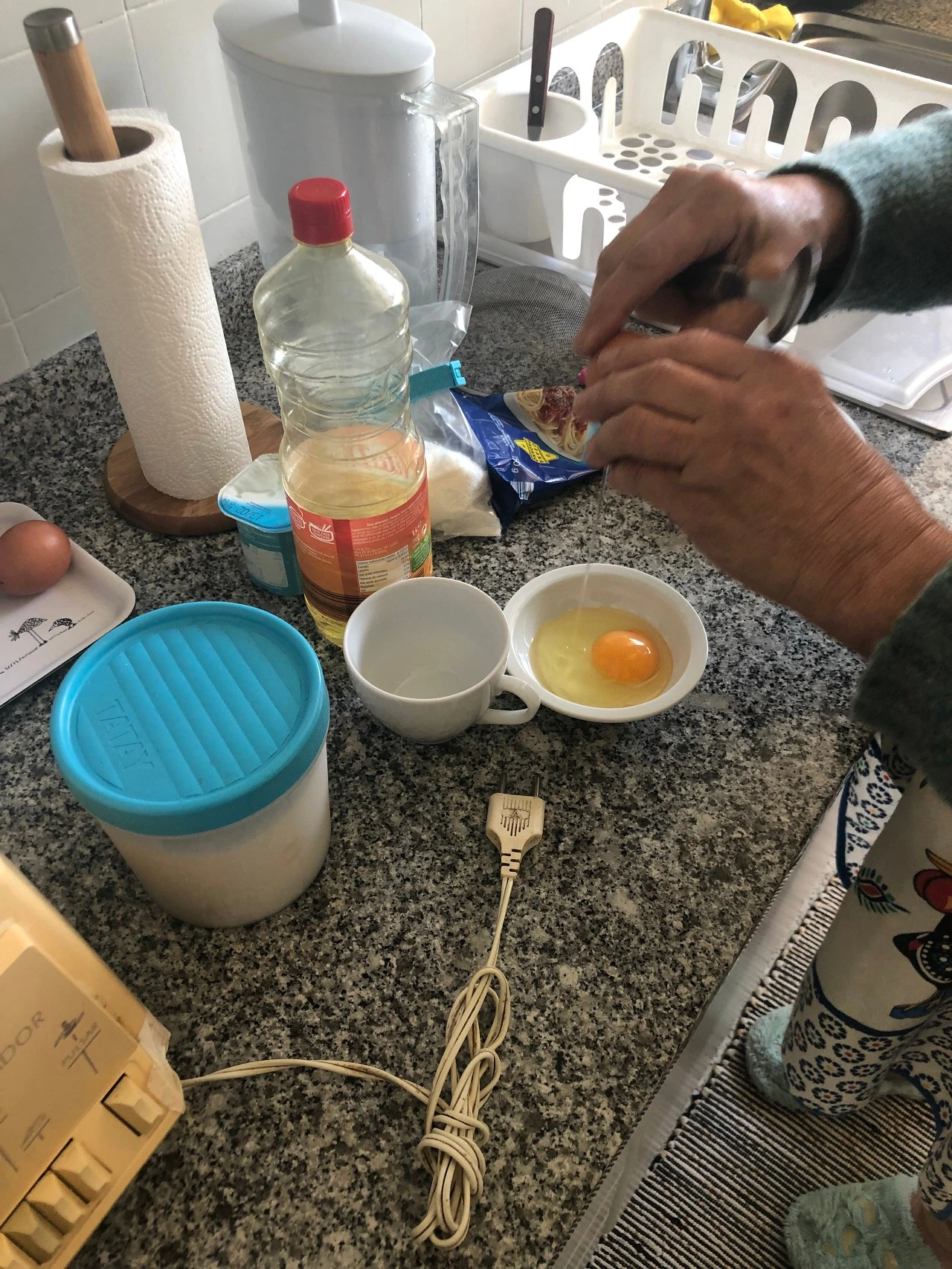 직접 만들어주신 쌀케이크를 너무 맛있게 잘 먹어서, 이 케이크 너무 좋다고 말씀드렸던 적이 있었다. 종이에 레시피까지 적어주셨는데, 오늘은 그 레시피를 직접 시연해주시겠다고 했다. 재료들을 하나하나 보여주시면서 베이킹 수업을 하시기 시작했고, 열심히 눈치 굴려가며 sim, sim(yes, yes)를 외쳤다. 말이 통하지는 않아도 하나라도 더 챙겨주시려는 진심이 느껴져서 참 좋다.