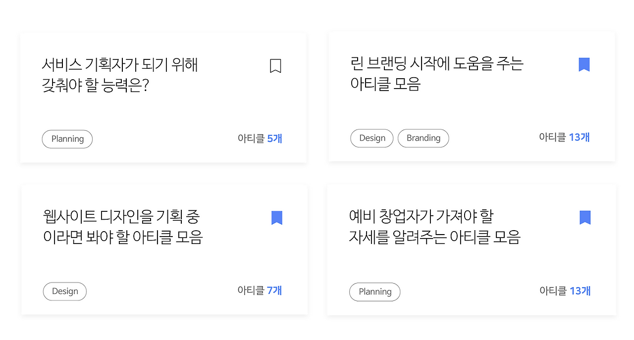 아티클을 큐레이션 해주는 서비스이기 때문에, 아티클이 가장 잘 드러나야 한다는 기준 하나는 꼭 붙잡고 싶었다. 그래서 각각의 컴포넌트들이 아티클보다 돋보여선 안된다고 생각했고, 자연스럽게 플랫한 형태를 띤 버전 1이 완성되었다.