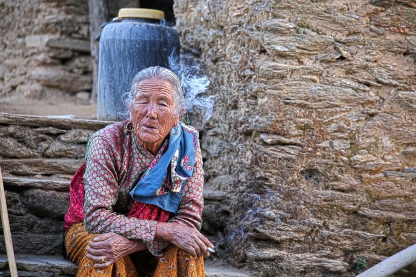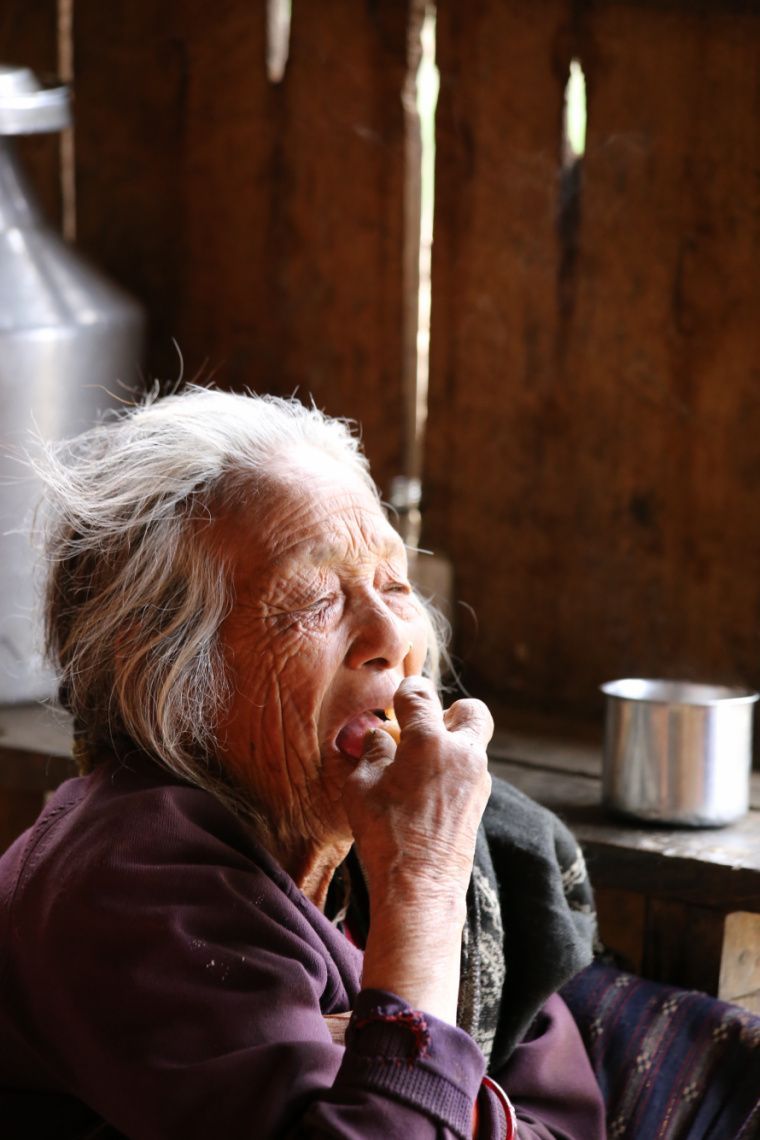 담배를 태우는 노파. 세월의 흔적이 굉장히 깊어 보이지만 실제로는 60대 후반 정도라는 듯하다. 화장품도 일절 없고, 뜨거운 해 아래 워낙 고된 육체노동이 일상인 데다가, 고산지의 마을에는 산소 농도도 낮다 보니 마을 사람들 전반적으로 한국 사람보다 나이가 많아 보인다.
