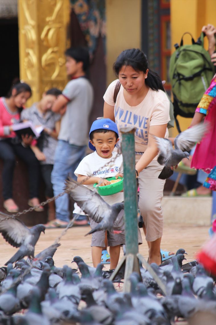 비둘기에게 먹이를 주는 그 행위가 이 불교의 성지에서 어떤 의미가 있는지는 또 모르겠지만, 어쨌든 그 행위에 대한 아이들의 반응은 지구 어디에서나 한결같다.