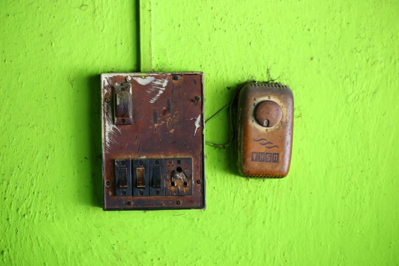 기름에 튀기는 음식이 많은 네팔의 구멍가게들. 벽에는 예쁜 색의 페인트를 칠했는데, 스위치엔 기름때가 잔뜩.