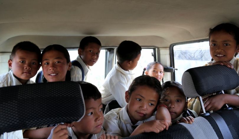 짐을 챙겨서 지프로 돌아왔는데 짐칸 뒷 유리에 아이들 얼굴이 한가득 보인다. 가까운 학교라고는 해도 비탈진 산길을 40여분에 걸쳐 걸어가야 하는 거리인지라, 내려가는 길에 태워주기로 했다고 한다.