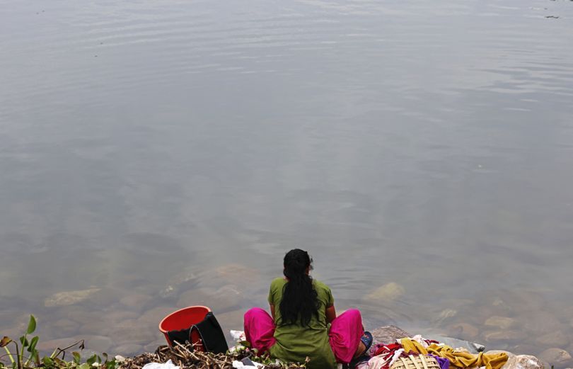 박타푸르의 대문을 빠져나와 즐비한 택시 호객꾼들을 지나고 나면 보이는 커다란 저수지. 이 곳에서 빨래도 하고 아이들은 멱도 감는가 보다.