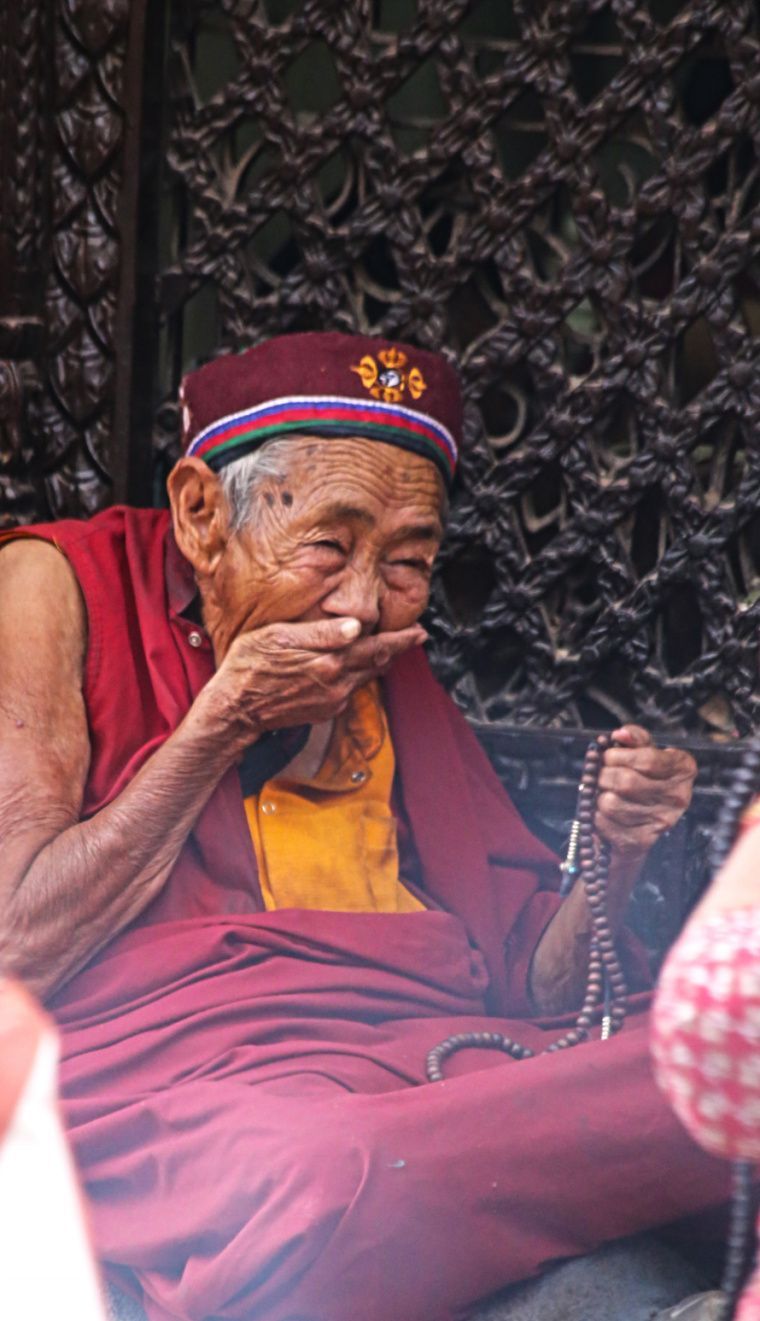 하품하는 노 승려. 초를 바치는 제단 앞 쪽에 줄곧 앉아있다. 한 번씩 가방에서 먹을 것도 꺼내는데, 한참을 보고 있어도 그곳에 앉아있는 이유를 짐작하는 데는 실패했다.