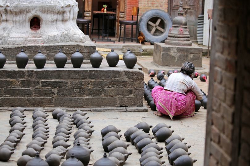 나무 조각과 함께 도자기는 박타푸르의 주요 생산물이라고 한다. 여전히 전통적인 방식으로 도자기를 만들어내고 있는데, 카트만두 인근을 통틀어 가장 많은 도자기가 여기서 생산된단다. "Potter's Square(도자기 광장)"이라고 불리는 곳을 가면 망치로 때려 흙을 반죽하는 사람에서부터 <사랑과 영혼>에서 보던 물레 성형, 빚어진 도자기를 말리고 있는 모습까지 볼 수 있다.