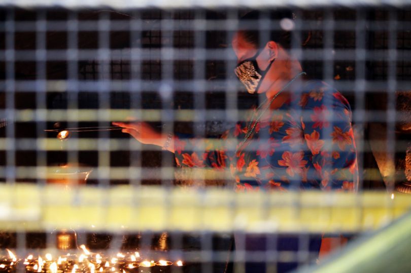 성당처럼, 이곳에서도 초에 불을 켜 공양하는 풍습이 있는 모양이다. 사원의 관리인 중 한 명인 듯, 불을 붙여둔 지 오래된 초들의 촛농을 따라내고 있다.