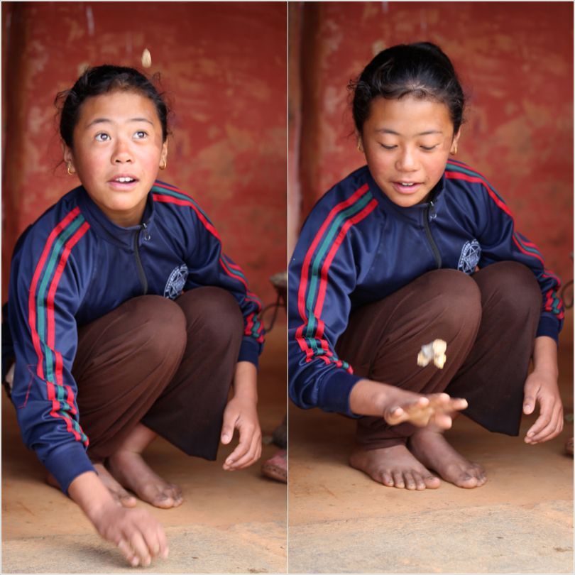네팔에서는 '알루'라고 부르는, 아이 주먹만 한 감자가 이 마을의 주된 간식이다. 끼니 때도 반찬으로 곁들여져 나오지만 식간마다 수시로 삶아서 소금에도 찍어먹고 설탕에도 찍어먹고 고수풀을 섞은 양념장에도 찍어먹는다. 고수풀을 섞은 양념장 맛있다.