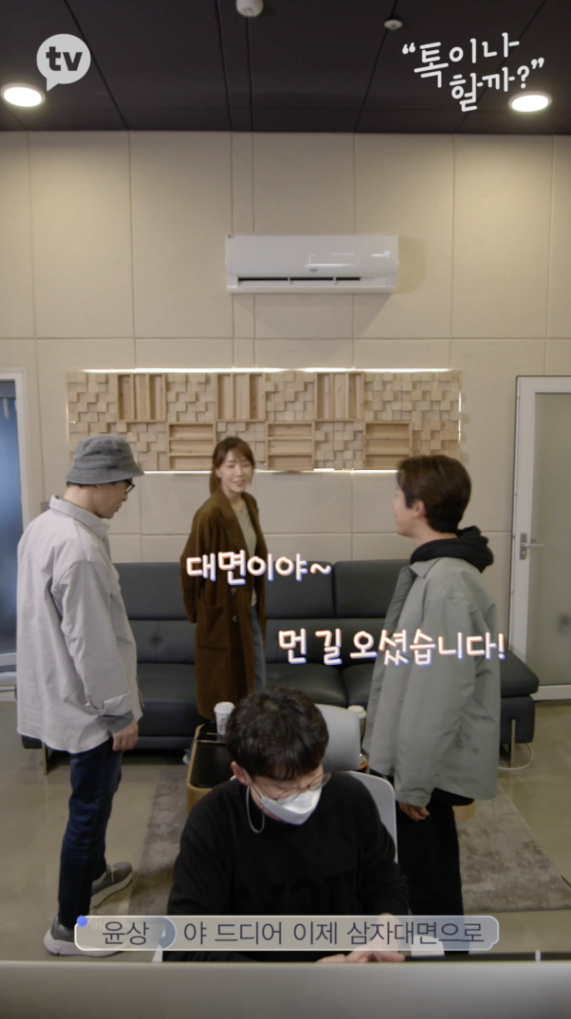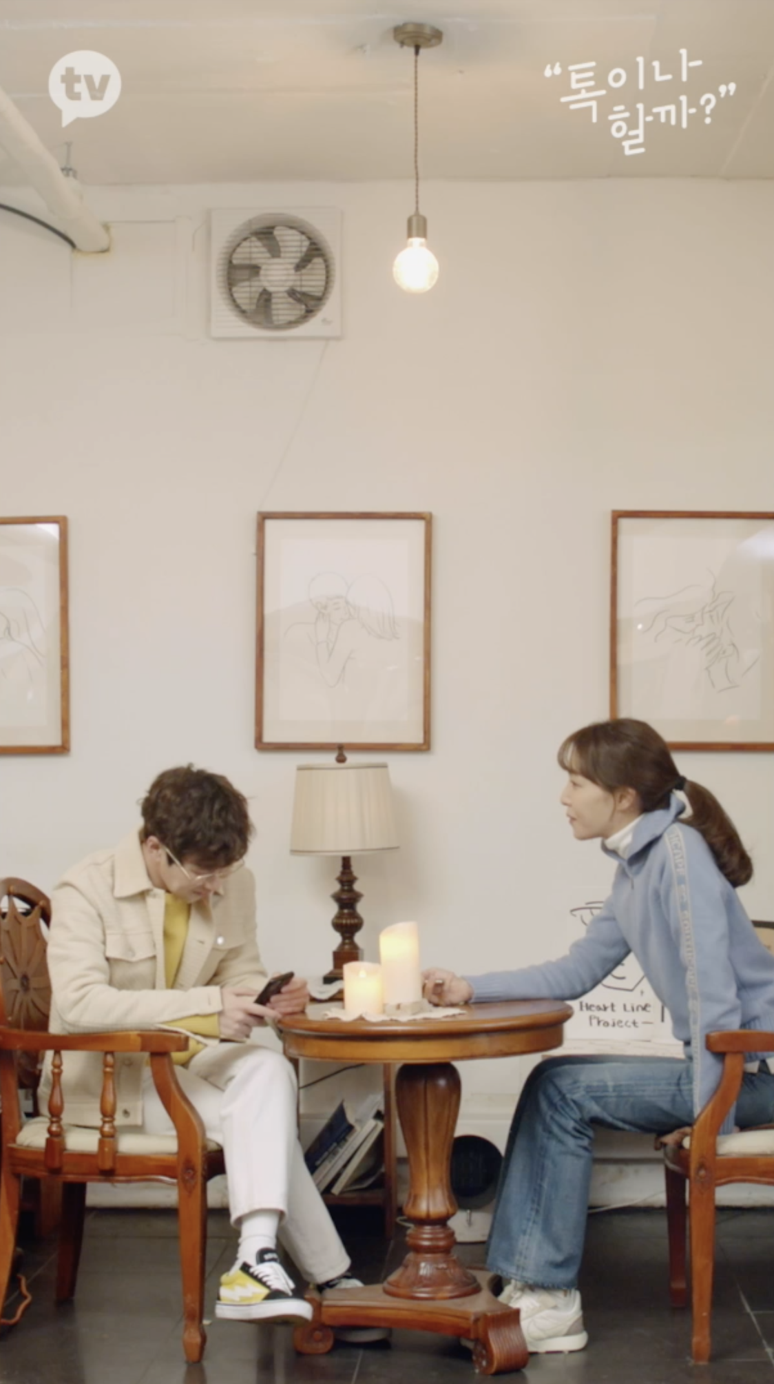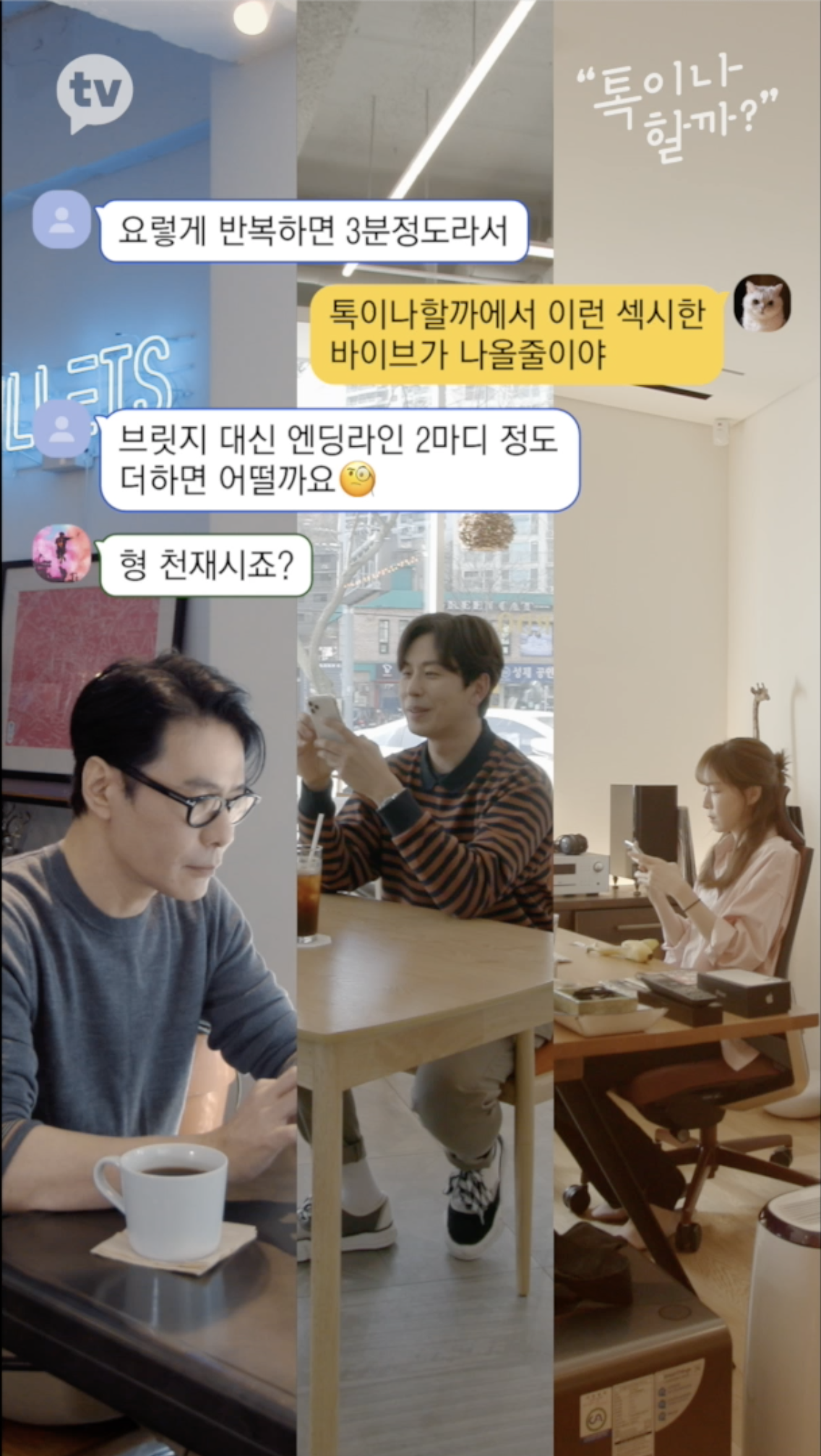 <톡이나 할까?> 원래의 세팅인 마주 앉아하는 '대면 카톡'은, 그 독특한 긴장감과 특유의 분위기에서 나오는 소통의 결을 담기 위한 기획이긴 했지만 실제로 평소에 그렇게 하는 사람이 없는 것은 사실이니 어느 정도 인위적인 것은 어쩔 수 없었다.