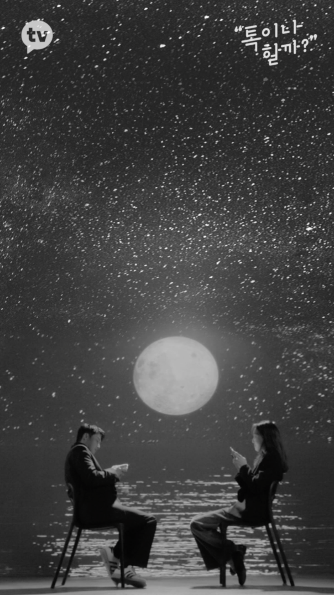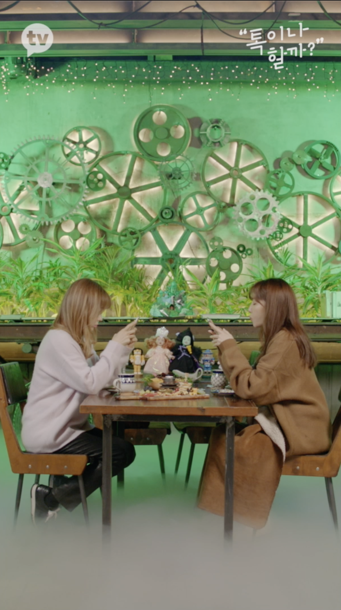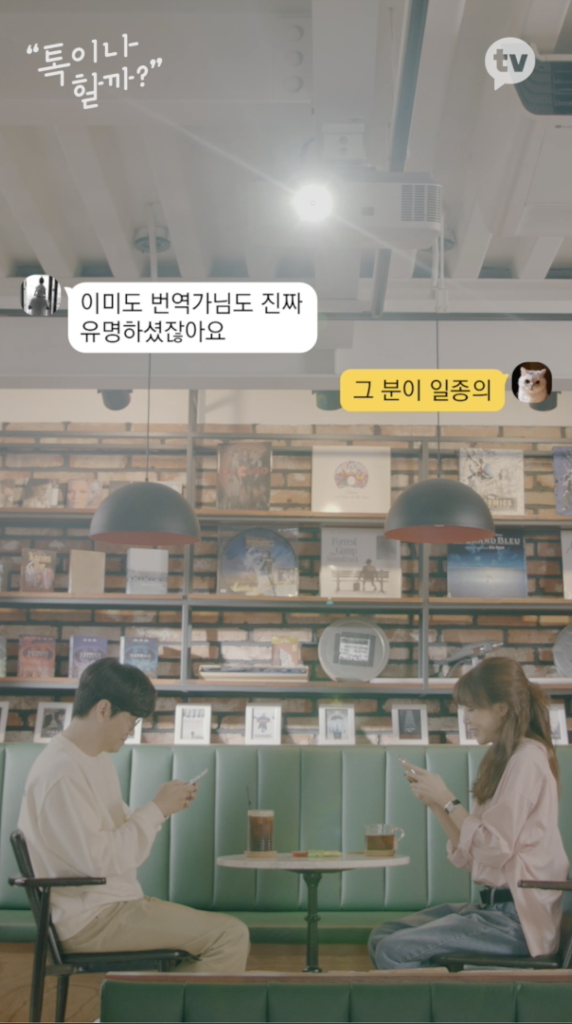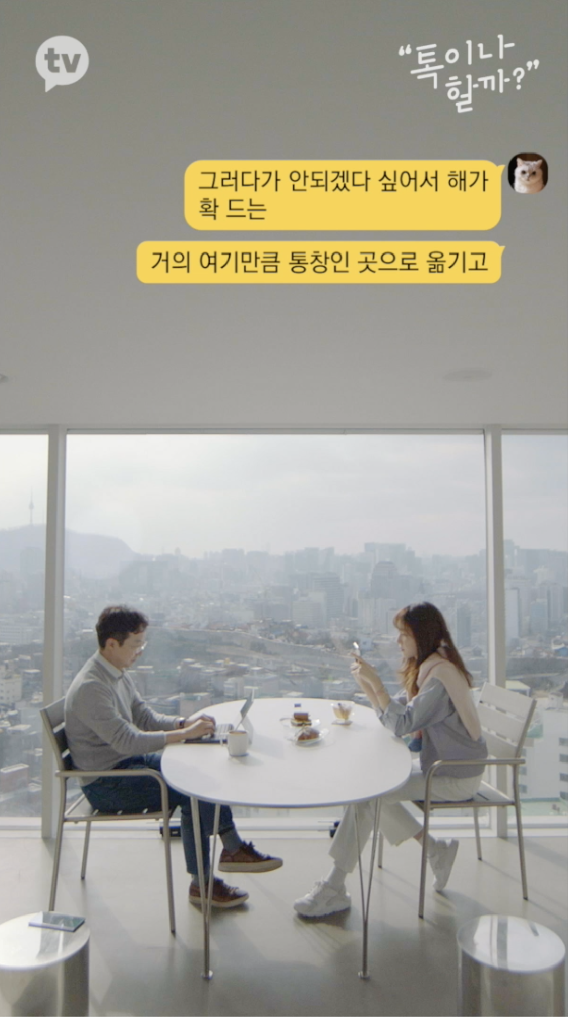 <톡이나 할까?> 원래의 세팅인 마주 앉아하는 '대면 카톡'은, 그 독특한 긴장감과 특유의 분위기에서 나오는 소통의 결을 담기 위한 기획이긴 했지만 실제로 평소에 그렇게 하는 사람이 없는 것은 사실이니 어느 정도 인위적인 것은 어쩔 수 없었다.