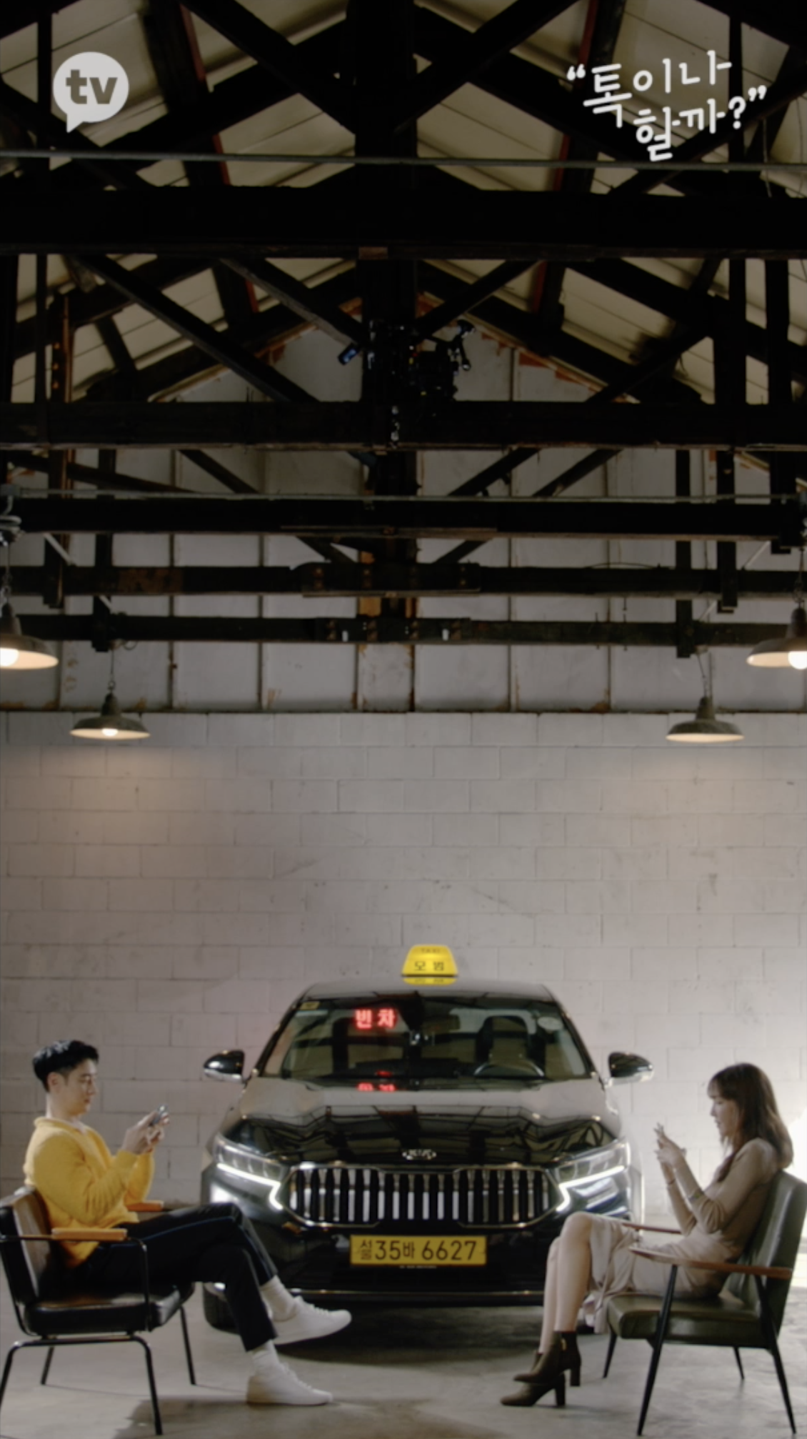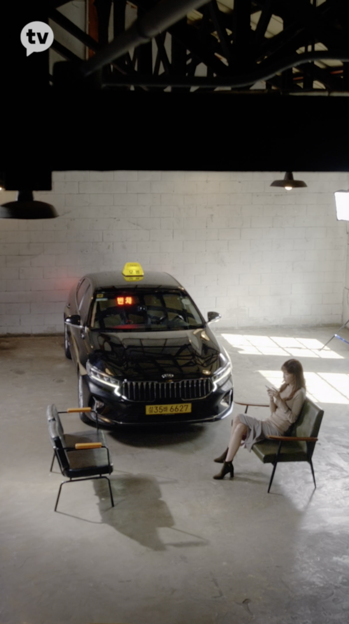 작전을 바꿔서, 작품이 <모범택시>고 실제로 작품 속에 모범택시가 주 소재로 등장하니 아예 모범택시를 갖다 놓으면 되겠다 싶었다. 그럼 문제가 쉬워진다. 지붕 아래 차량을 들일 수 있는 촬영 가능한 공간은 그리 많지 않으니까. 있긴 있다. 대형 스튜디오들 중에서는 문을 이중으로 열어 차를 들일 수 있도록 된 곳들이 종종 있다.