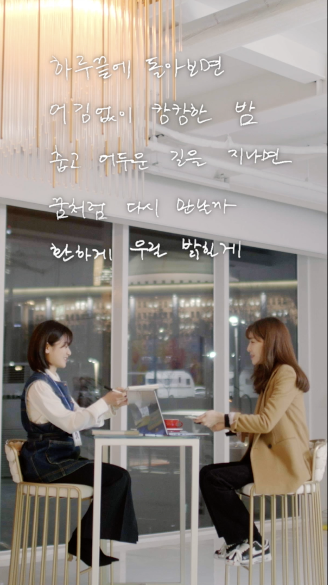 시시각각 야경으로 변해가는 국회의사당의 풍경도 몹시 인상적이었고, 커다란 통유리 너머로 여의도의 도로가 고스란히 들어와 클로즈업 샷에 오가는 차들의 불빛이 영롱하게 잡혔다. 두 출연자의 예쁜 프로필을 더 아름답게 잡을 수 있었던 로케이션.