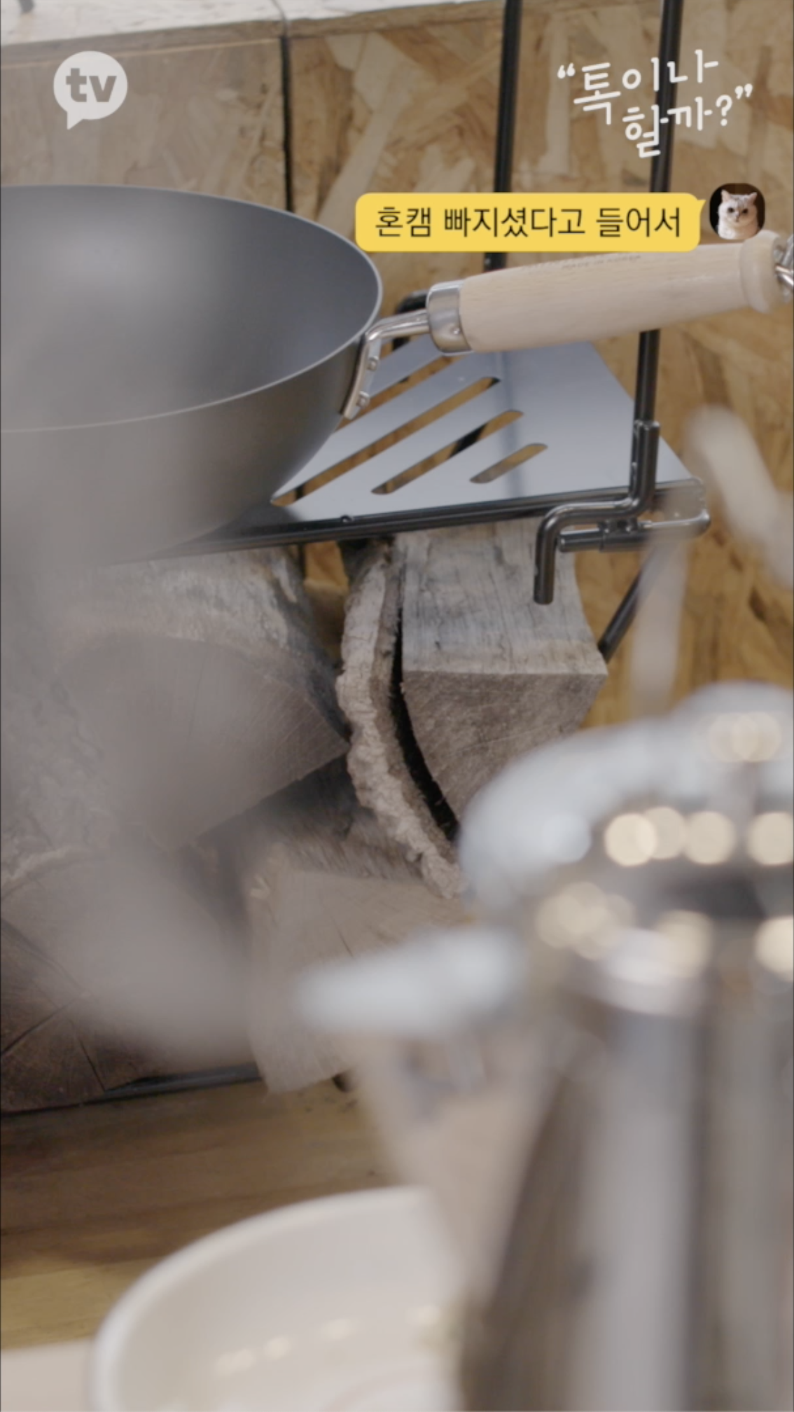 그래서 찾아낸 곳. 기본적으로 캠핑용품을 파는 곳이었지만, 뒤뜰에는 텐트와 모닥불을 설치해 실제 캠핑 분위기를 즐길 수 있는 공간도 있었고 이런저런 이벤트도 하는 모양이었다. 두 사람이 앉아서 촬영을 진행한 곳은 원래 캠핑 용품들의 사용 예시를 보여주기 위해 디스플레이 되어있던 공간.