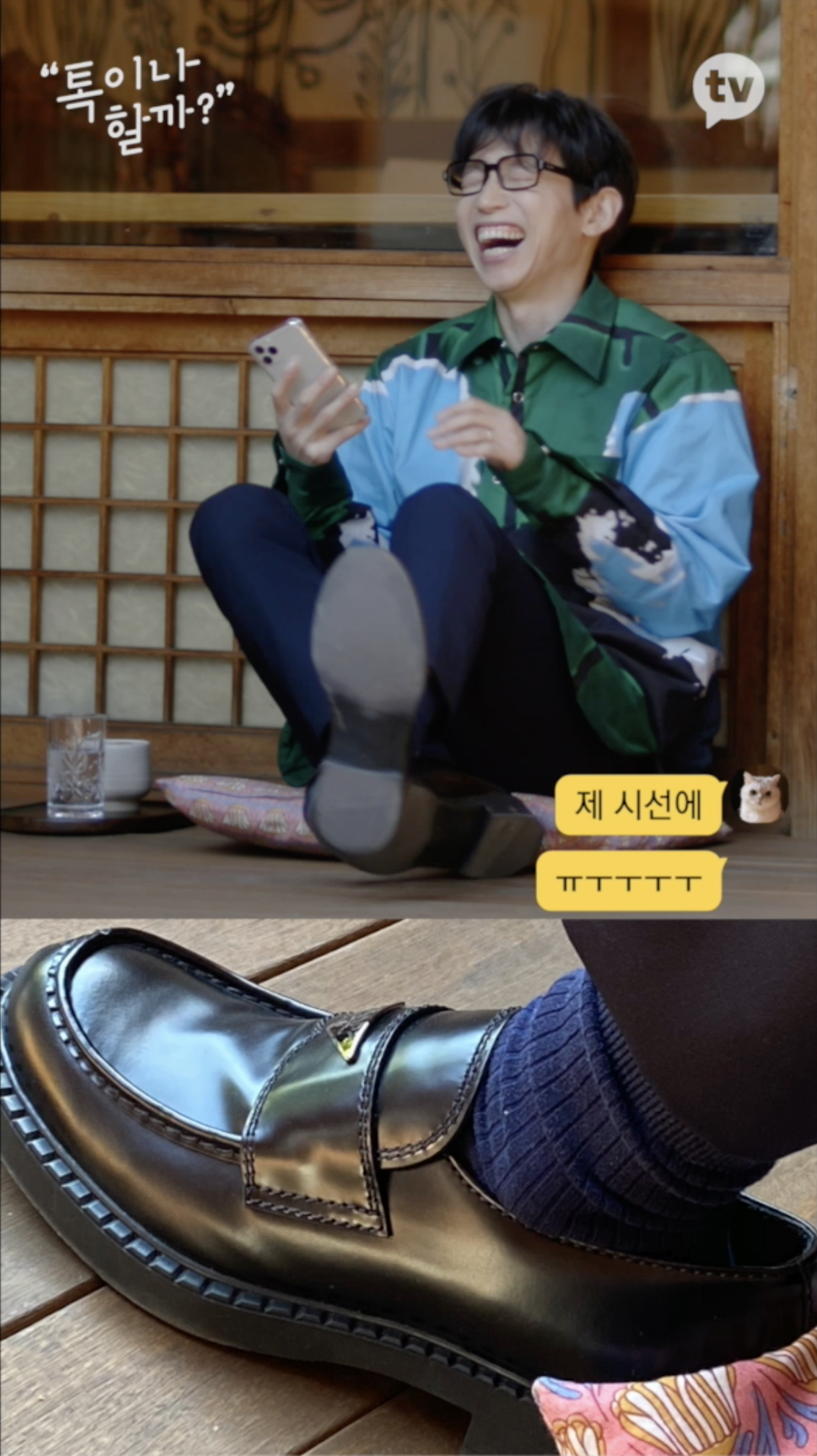 그리고 <톡이나 할까?> 전 편을 통틀어 가장 웃음이 많이 터진, '봉태규 프라다 협찬의 슬픔' 장면이 나왔다. 아마 원래 계획대로 계단에 앉았거나, 의자를 세팅해서 앉았다면 나올 수 없는 장면이었을 것이다. 어떤 결정은 종종 예상하지 못한 결과로 이어지기도 한다.