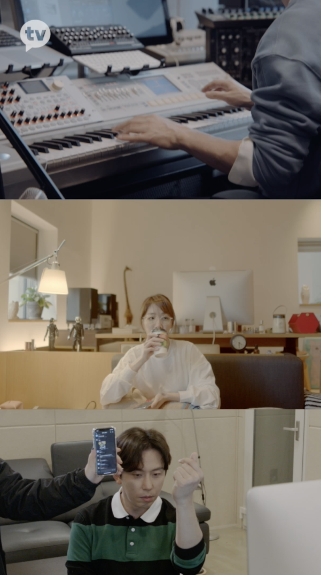 곡의 틀을 잡고 데모를 만드는 첫 촬영은 세 사람 모두 각자의 작업실에서 찍었다. (작업실이니까 편한 모습으로 찍자고 했더니 이나 누나가 정말 기대 이상으로 편하게 나와 놀라웠던 날이기도 했다.)
