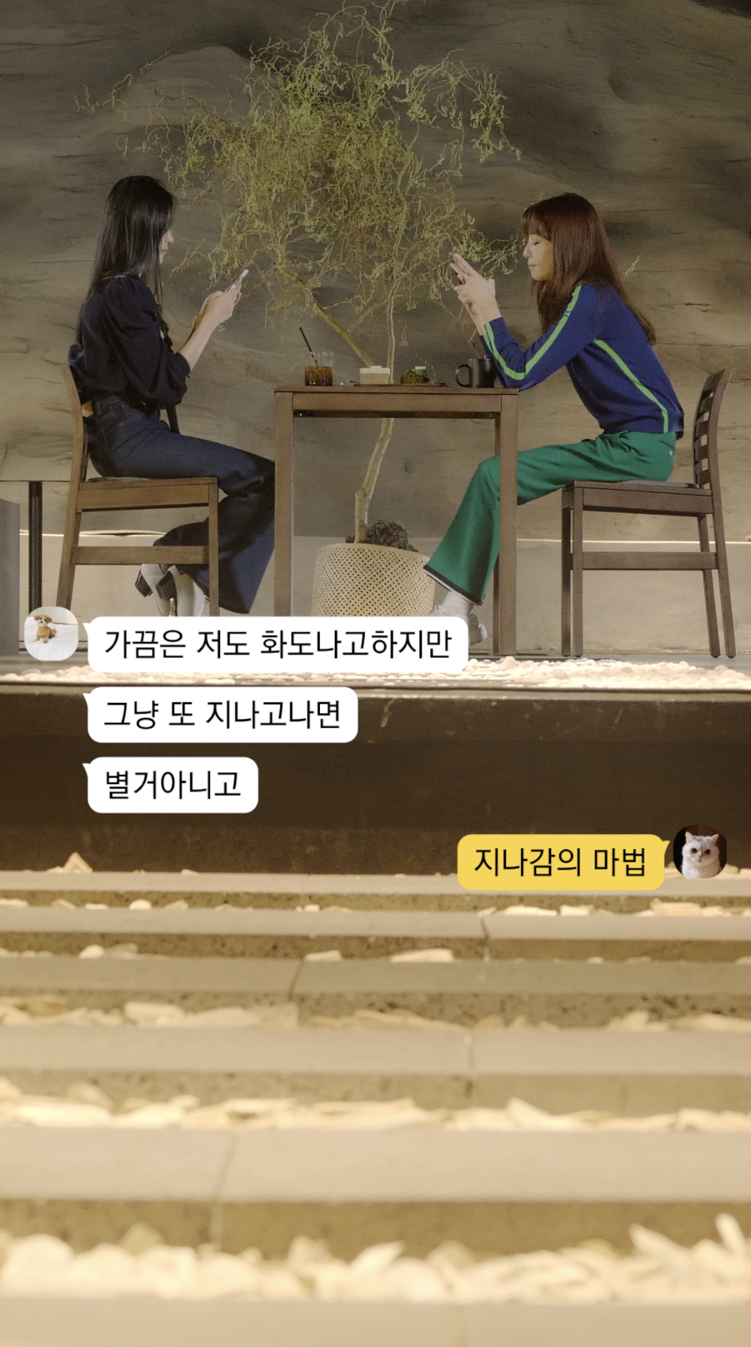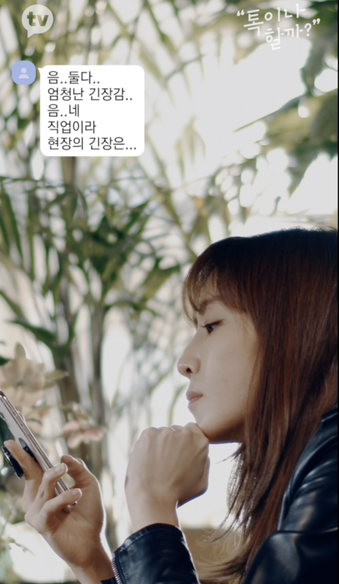 시간적으로도 세 번을 나눴지만, 공간적으로도 세 곳이 나눠졌다. 처음으로 각자의 공간에서 정말 일상적인 카톡을 하듯이 이루어진 촬영이었는데, 사실 이렇게 현장을 쪼개는 것이 촬영에는 꽤 부담이 크다. 팀을 세 개로 구성해야 하기 때문이다.