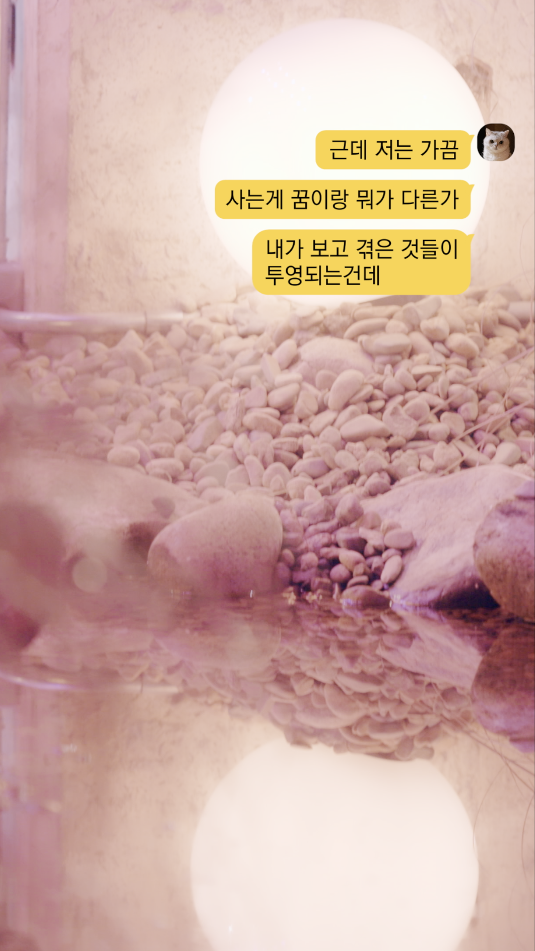 노래도 두 개의 층위를 다루는 내용이었다. 겉으로는 괜찮은 것 같은 일상과, 이면에서는 조용히 무너져가고 있는 감정에 대한 이야기. 그렇다면 뮤직비디오에서도 스크린에 투사되는 괜찮은 일상과, 그 앞에서 노래하는 내면의 목소리라는 두 개의 레이어가 보였으면 했다.