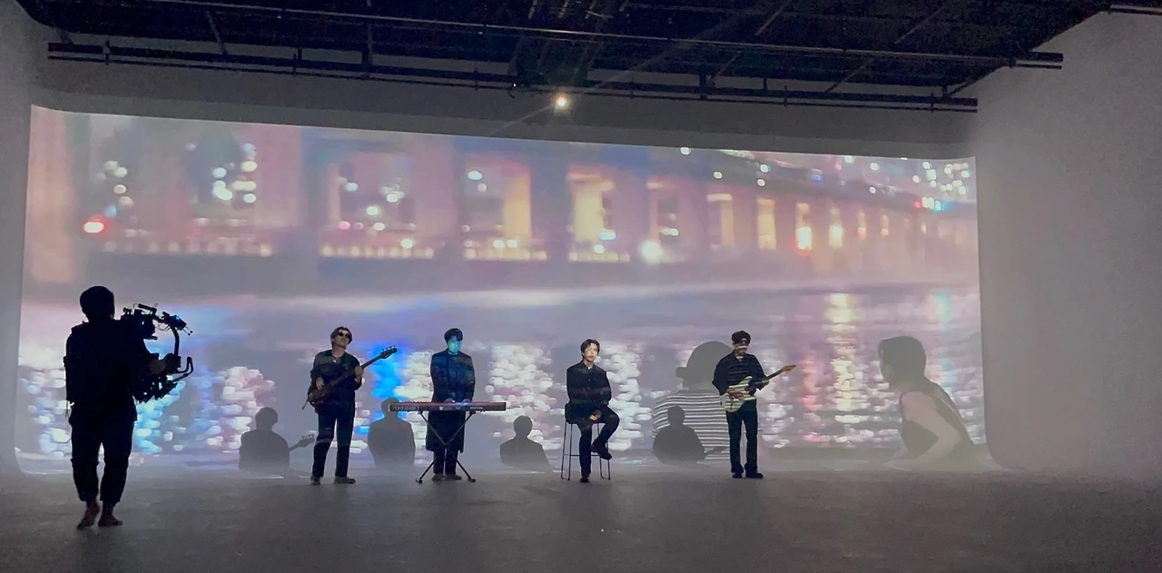 그럼 중요한 것은 영상을 투사할 스크린과 스튜디오의 크기였다. 벽에 투사되는 영상의 사이즈가 충분히 커서 그 앞에서 노래하고 있는 실제 인물의 크기와 대비가 강하게 드러났으면 했다. 원테이크로 이동해야 하는 만큼 가용한 동선의 범위도 충분히 커야 했다.