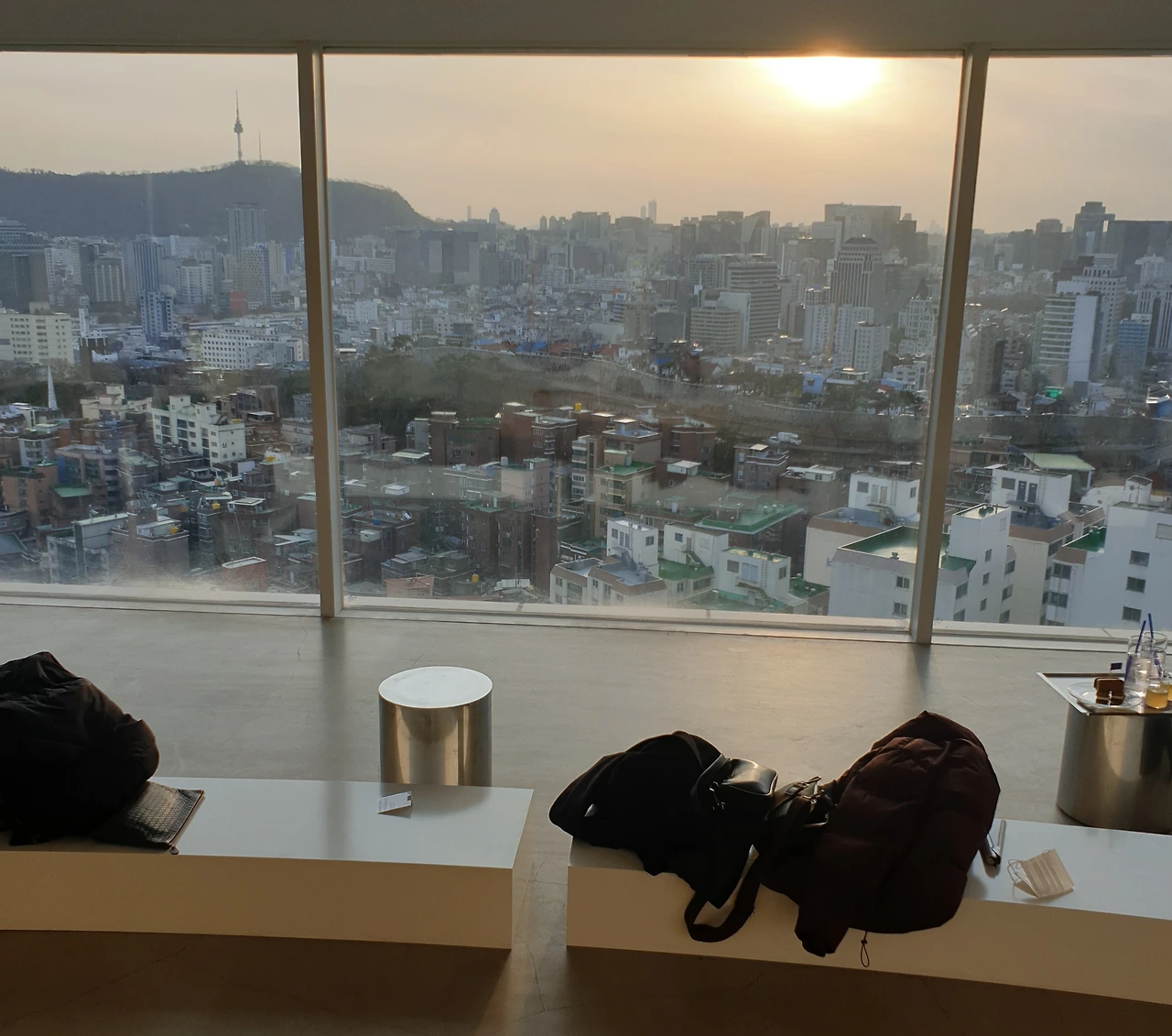 단지 도심의 전경이 시원하게 펼쳐진다는 이유 만으로 항상 그렇게 사람들이 찾는 건 아닐 텐데, 이상하게 이곳의 뷰는 묘한 마력이 있었다. 촬영 전 사전 답사로 들렀을 때는 시간이 살짝 늦어 해가 기울고 있었는데, 작은 의자에 옹기종기 앉아 통창 너머 지는 해를 바라보는 사람들의 모습이 아득했다.
