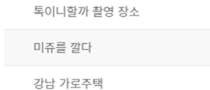 그리고 확실히 촬영지가 매번 화제가 됐던 방송이라 '톡이나 할까 카페'나 '톡이나 할까 루프탑', 혹은 게스트 이름과 함께 검색해서 들어오는 경우가 꽤 많은데, 그래서 나도 친히 모든 촬영지를 다 정리해서 올려 드렸지만 그중에서도 유독 자꾸 눈에 띄는 검색어가 있는데,