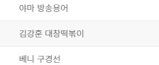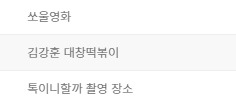 3회에 출연했던 김강훈 배우가 먹던 대창떡볶이다. 다른 방송분은 다들 장소 이름을 찾는데 이 편만 유독 음식 이름으로 검색하시는 것 같다.