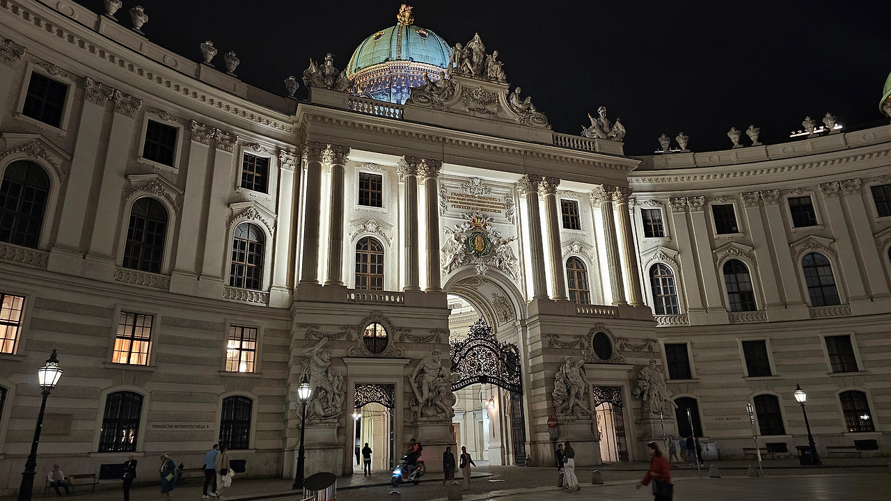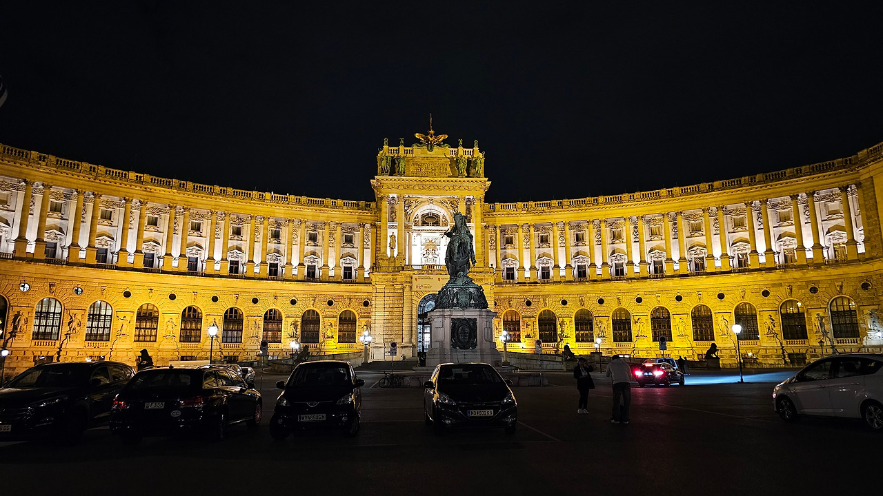 빈 왕궁인 호프부르크 앞과 헬덴플라츠 광장을 지나 마리아 테레지아 광장에서 자연사, 미술사박물관 야경까지 보고,트램으로 호텔 복귀.