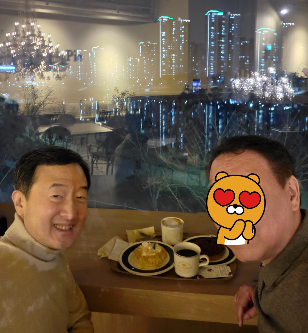그리고 흐르는 강물에 아파트의 조명이 비치는 미사리의 뷰 맛집 ‘마담 파이’에서 달달한 파이와 쌉쌀한 커피로 달달한 대화를 이어갔습니다.