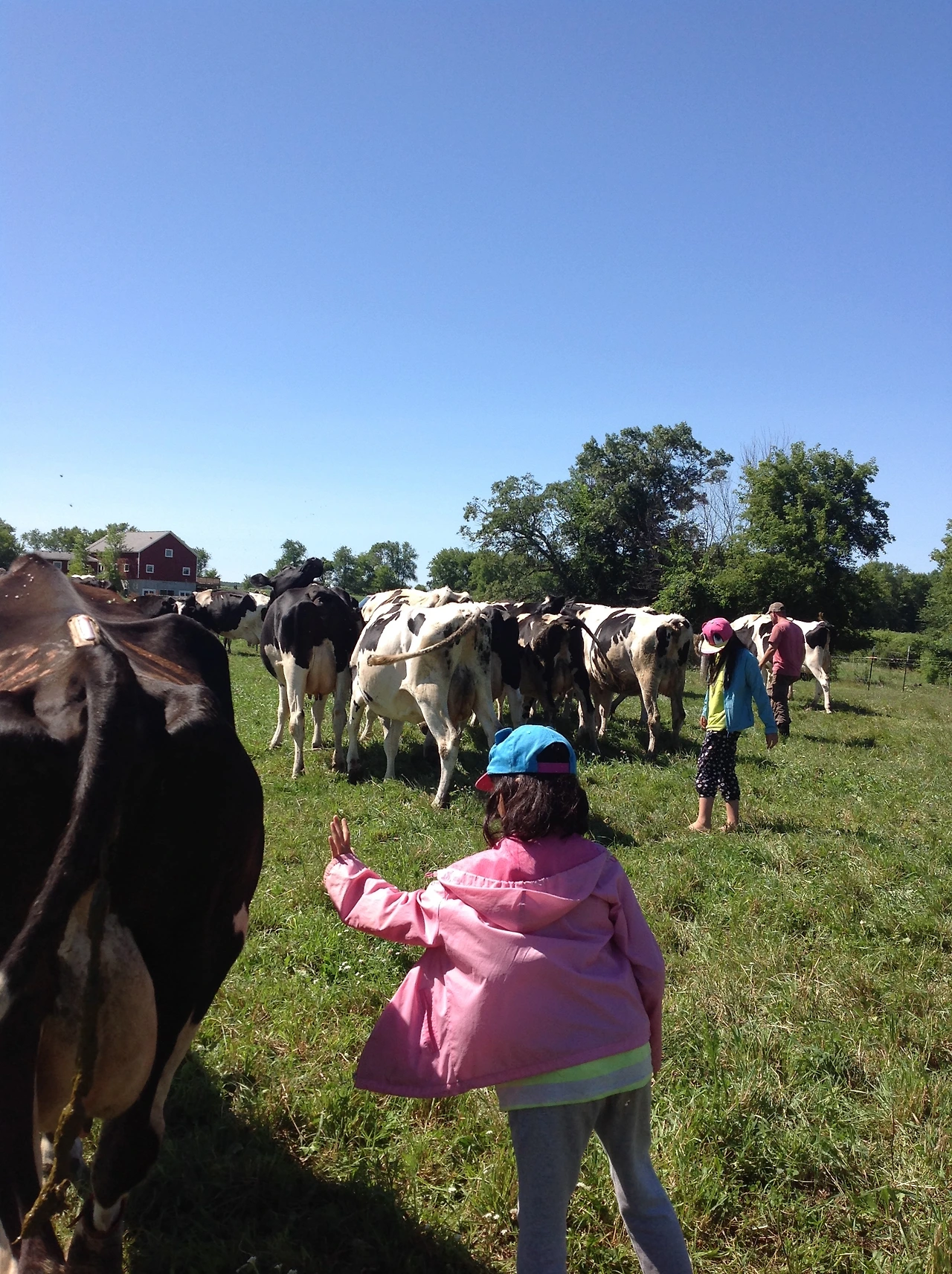 그렇게 해서 송아지 잠자리를 깔아주고, 건초를 주고, 파리 테잎도 갈아주고, 바닥까지 정리하는 일이 끝났다. 힘들다고 포기할까 봐, 옆에서 잘한다는 말을 얼마나 했던지~ 내 입이 아플 지경이다. 쉬지 않고 일을 했더니 시간이 꽤 남았다. 아이들은 오늘도 풀밭에 나가 있는 소들한테 물을 주러 가는 윌과 동행하겠단다. 마지막이라고 생각하니 모든 것들에 더 애정이 생기는 듯 하다. 푸른 초원에서 풀을 뜯어먹는 소들에게 시원한 물을 주는 풍경이 고즈넉하다.