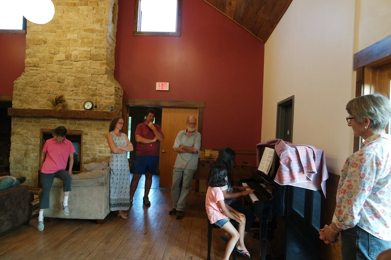 “여러분 고마워요. 이제야 적응을 한 것 같은데, 벌써 떠나야 할 때가 되었네요. 저희 가족은 이곳에서 자연과 여러 사람들이 공존하며 나누는 삶을 보고 많은 감명을 받았어요. 아이들은 자연과 동물들을 너무 사랑해요. 이 곳에서의 경험이 앞으로 우리 삶에 큰 의미가 있을 거예요. 아이들이 매일 저녁 커뮤니티센터에서 피아노 연습을 한 거 아시죠? 여러분에게 감사의 표시로 피아노 연주를 하려고 해요.”