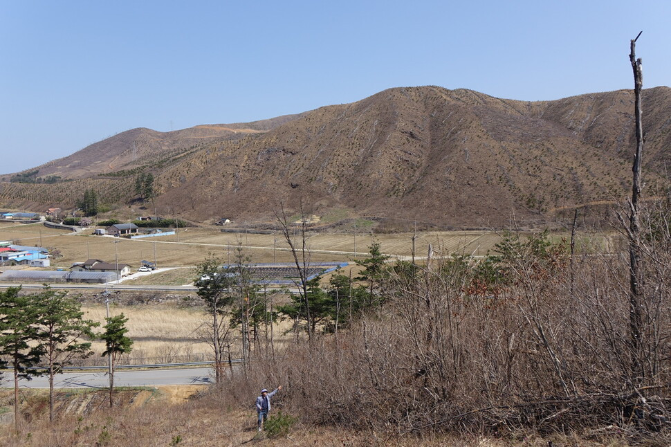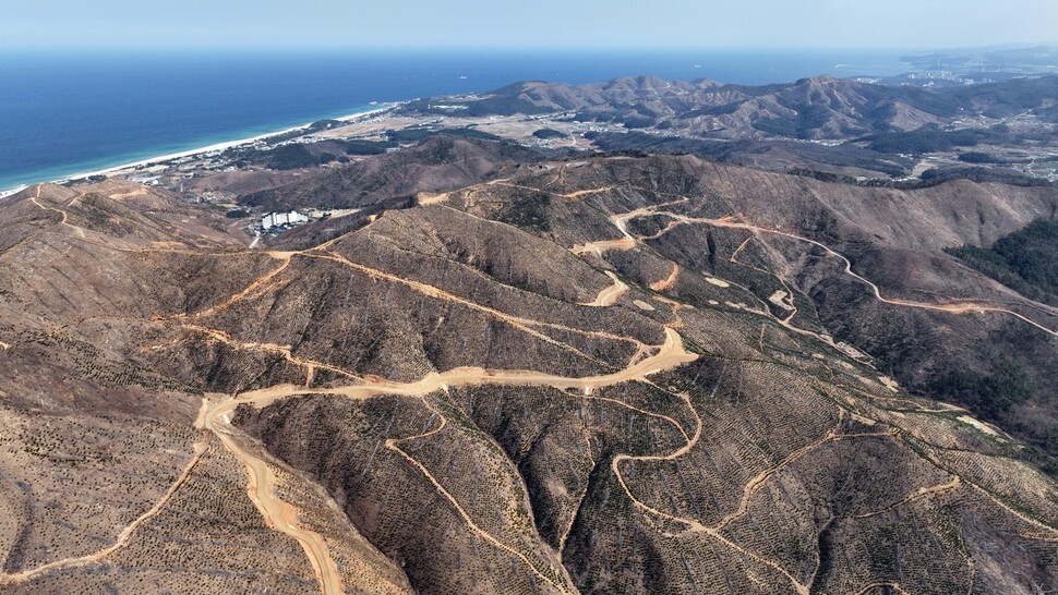 3월 31일, 강릉 옥계의 산자락에 섰을 때 가장 먼저 눈에 들어온 것은 색이었습니다. 봄이어야 할 산이 누런 흙빛으로 굳어 있었습니다. 능선은 매끈하게 벗겨져 있었고, 그 굴곡은 마치 거대한 짐승의 등뼈처럼 동해 쪽으로 길게 이어졌습니다. 바다에서 불어오는 바람이 막힘없이 산을 타고 올라왔습니다. 숲이 있었다면 걸렸을 바람이 그대로 몸을 밀쳤습니다.