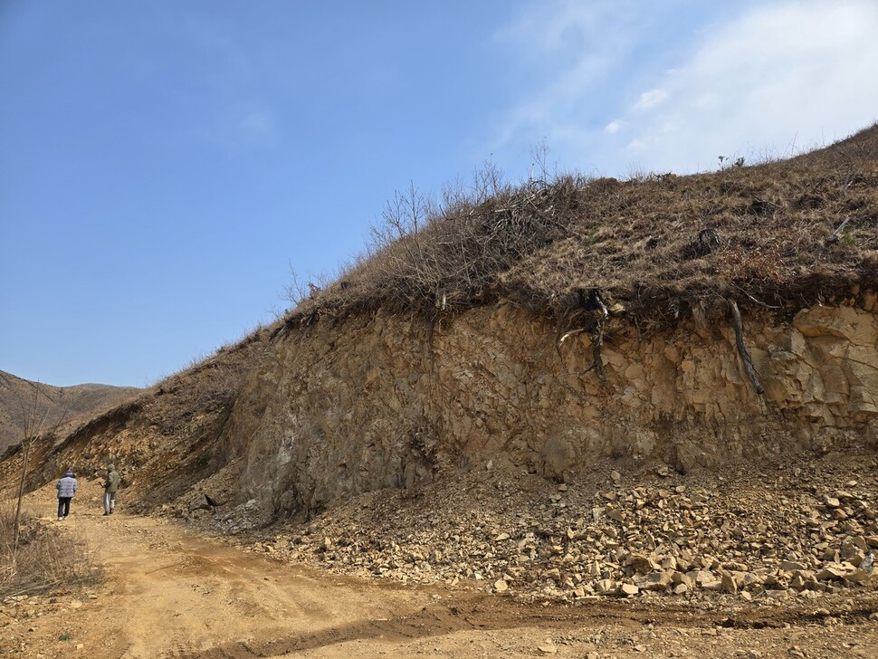 산 중턱에는 중장비가 지나간 작업로가 그대로 남아 있었습니다. 흙을 깎아 수직에 가깝게 만든 절개면이 군데군데 드러나 있었습니다. 그 단면에서는 뿌리가 잘린 채 공중에 노출돼 있었고, 아직 풀 한 포기 자라지 못한 흙은 부서지기 쉬운 상태였습니다. 발로 디디면 미세한 흙먼지가 일어났습니다. 비 한 번 세게 오면 그대로 쓸려 내려갈 것 같은 표면이었습니다.