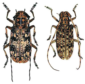 소나무재선충(선형동물류, 1mm 내외)의 매개충이다.