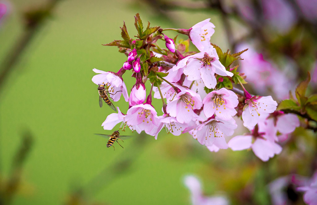 영국과 유럽 과수원을 대상으로 한 수분 네트워크 연구들을 보면, 벚나무 꽃가루는 특정 한 종에 독점되지 않습니다. 꿀벌이 우점하는 해도 있지만, 기온이 낮거나 바람이 강한 조건에서는 꽃등에류의 방문 빈도가 높아진다는 보고가 있습니다. 뒤영벌은 저온에서도 활동이 가능하고, 소형 파리류는 흐린 날에도 꽃을 찾습니다. 서로 다른 생리적 한계를 지닌 곤충군이 시간대와 기상 조건에 따라 역할을 나누는 구조입니다.