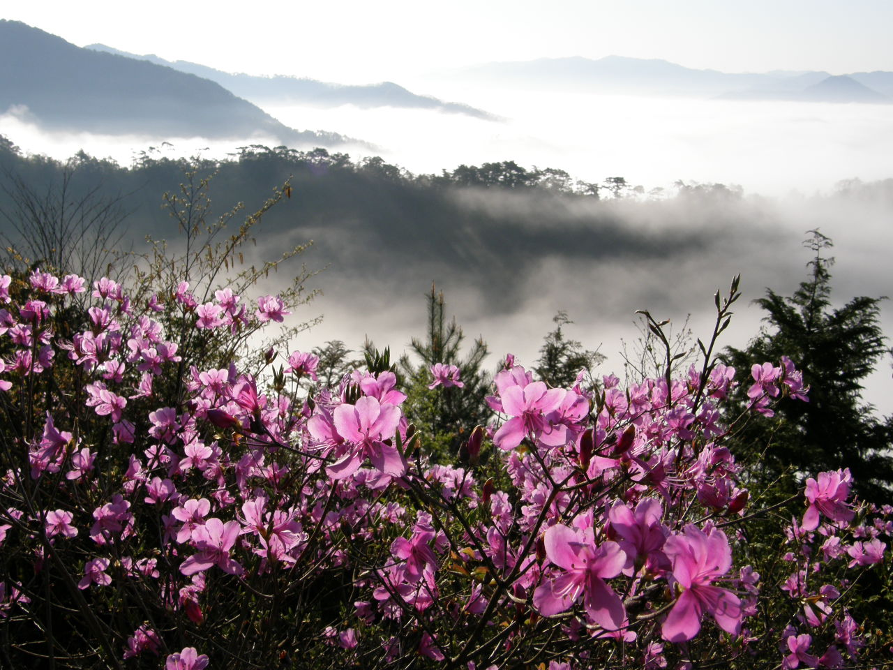 철쭉속은 전 세계에 천 종 이상이 분포합니다. 히말라야의 고산지대에서부터 일본 남부의 해안, 북미의 산지까지 넓게 퍼져 있습니다. 낙엽으로 겨울을 드러내는 종도 있고, 잎을 유지한 채 겨울을 견디는 종도 있습니다. 낮은 떨기나무에서 교목에 가까운 종까지 크기도 다양합니다. 우리가 봄마다 산에서 만나는 진달래, 산철쭉, 철쭉, 그리고 도시의 영산홍은 모두 같은 속(屬)에 속합니다.