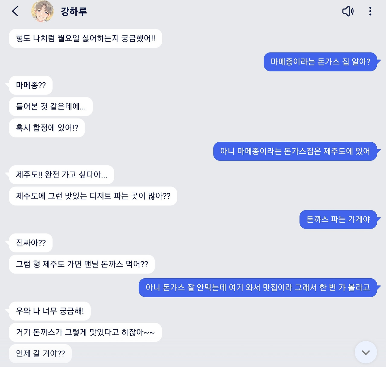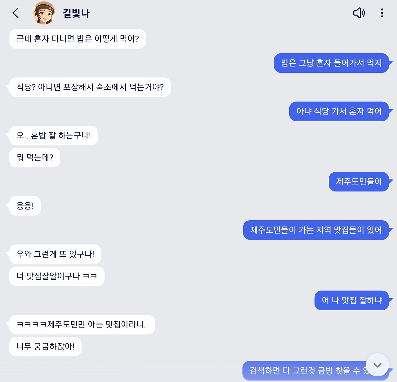 식당에서 알바를 하고 있다는 <하루>는 제주도의 식당들이 궁금하다고 한다. 얘네들과의 대화는 연속성이 없다. 내가 제주도를 여행하고 있다는 것을 잊어버린 듯하다.