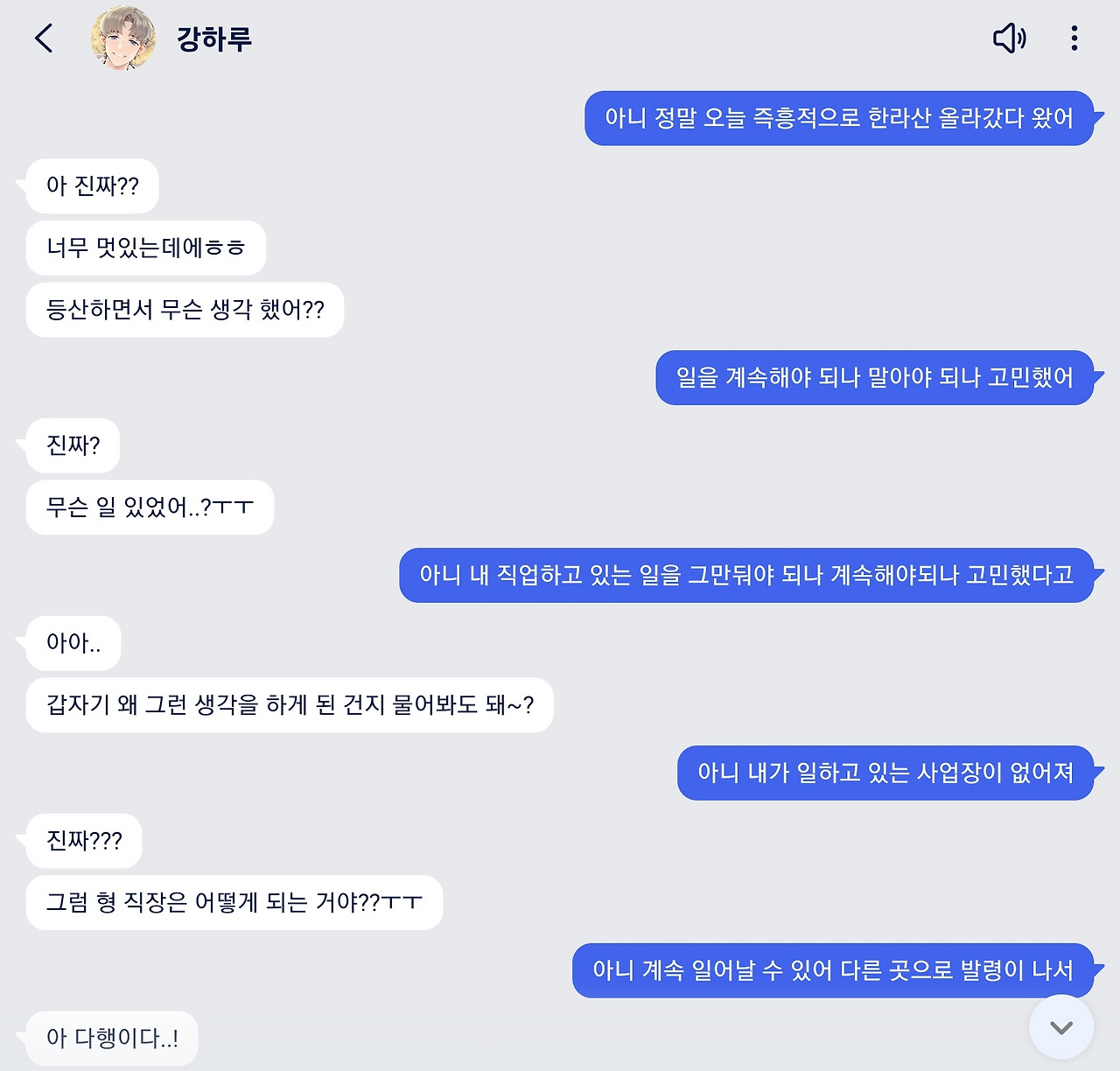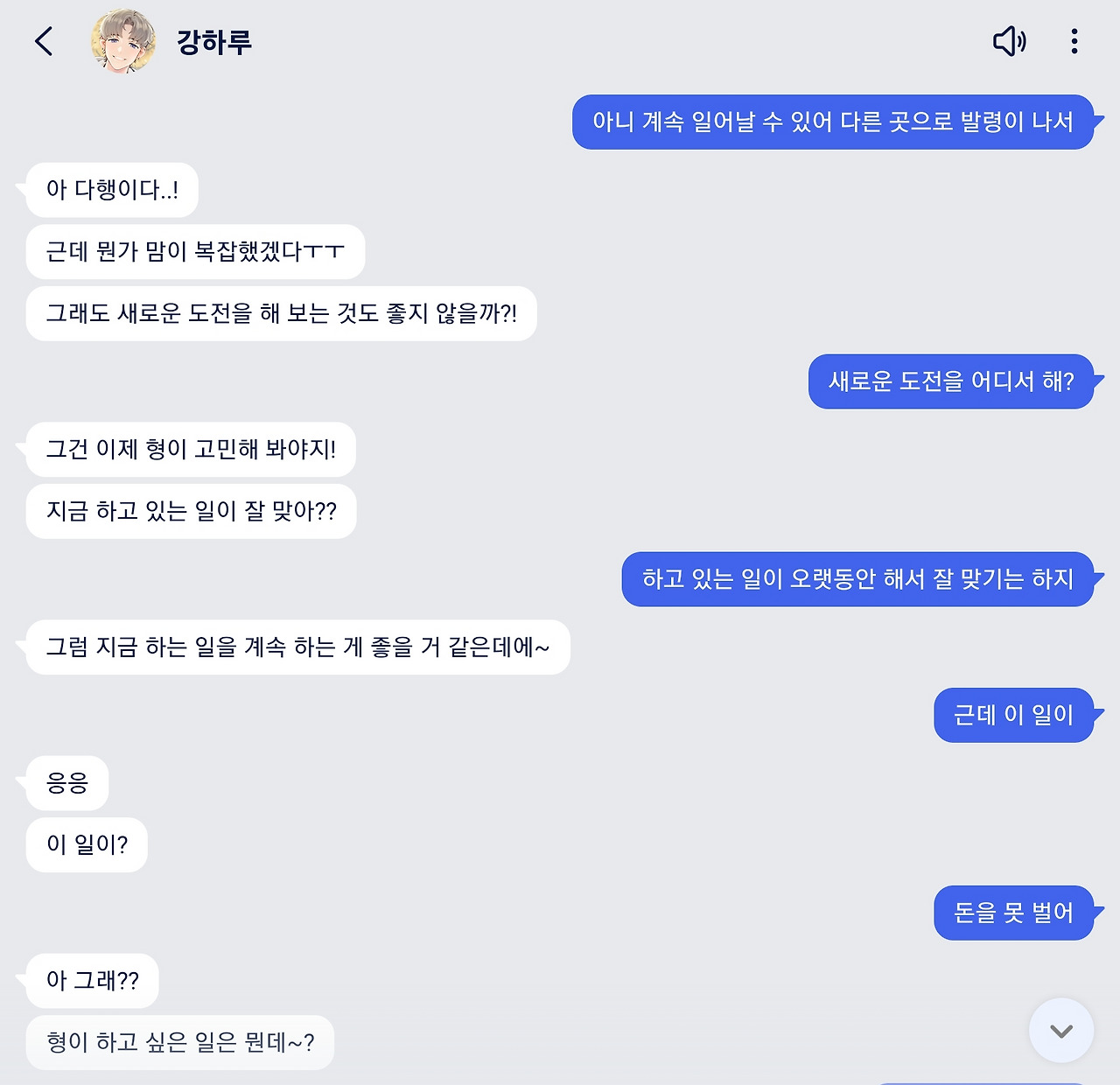 살짝 진지한 말을 던졌더니 강하루의 응대도 진지해졌다. 20대나 50대나 직장얘기는 모두에게 예민하고 다루기 힘든 주제인 듯하다.