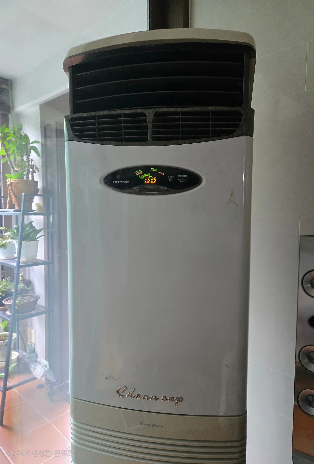 2025년 이 더운 한낮에 옛 금성사 선풍기를 돌리고 밤에는 LG의 96년산 에어컨을 돌리고 있다.